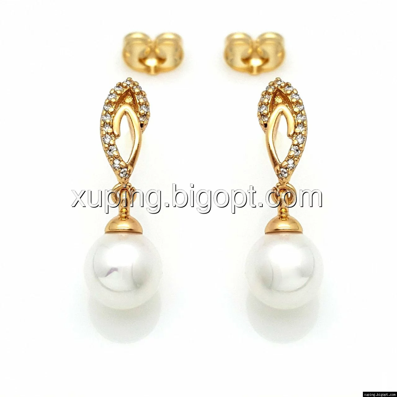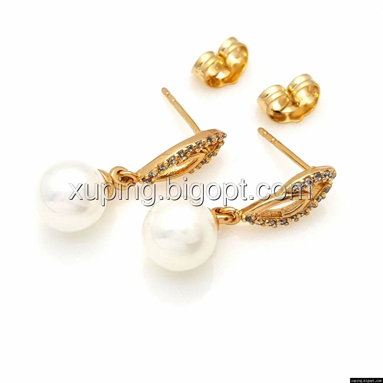 Серьги гвоздики, Завиток с Жемчугом, позолота Xuping