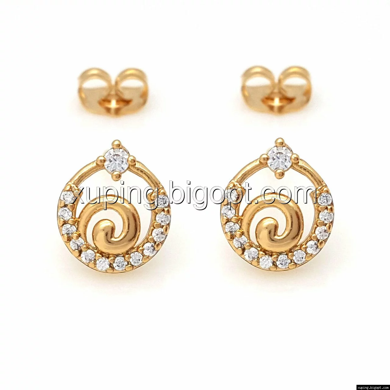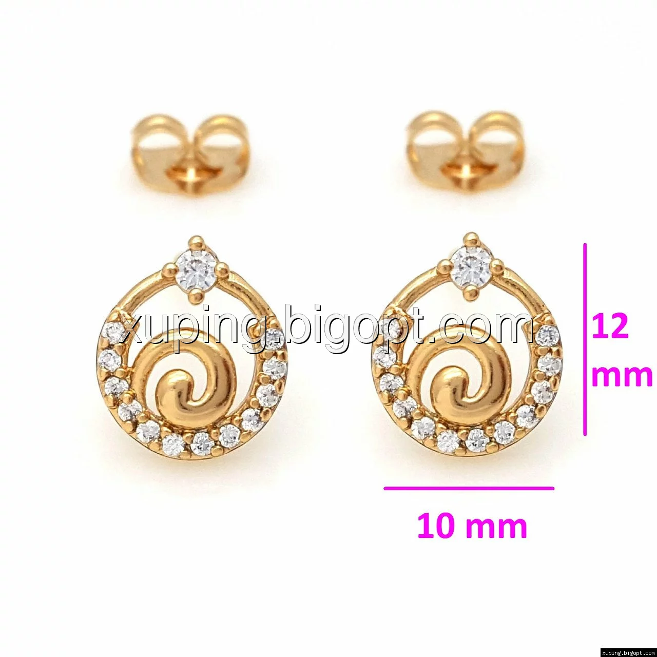 Серьги гвоздики, Завитушка с камнями, позолоченные Xuping