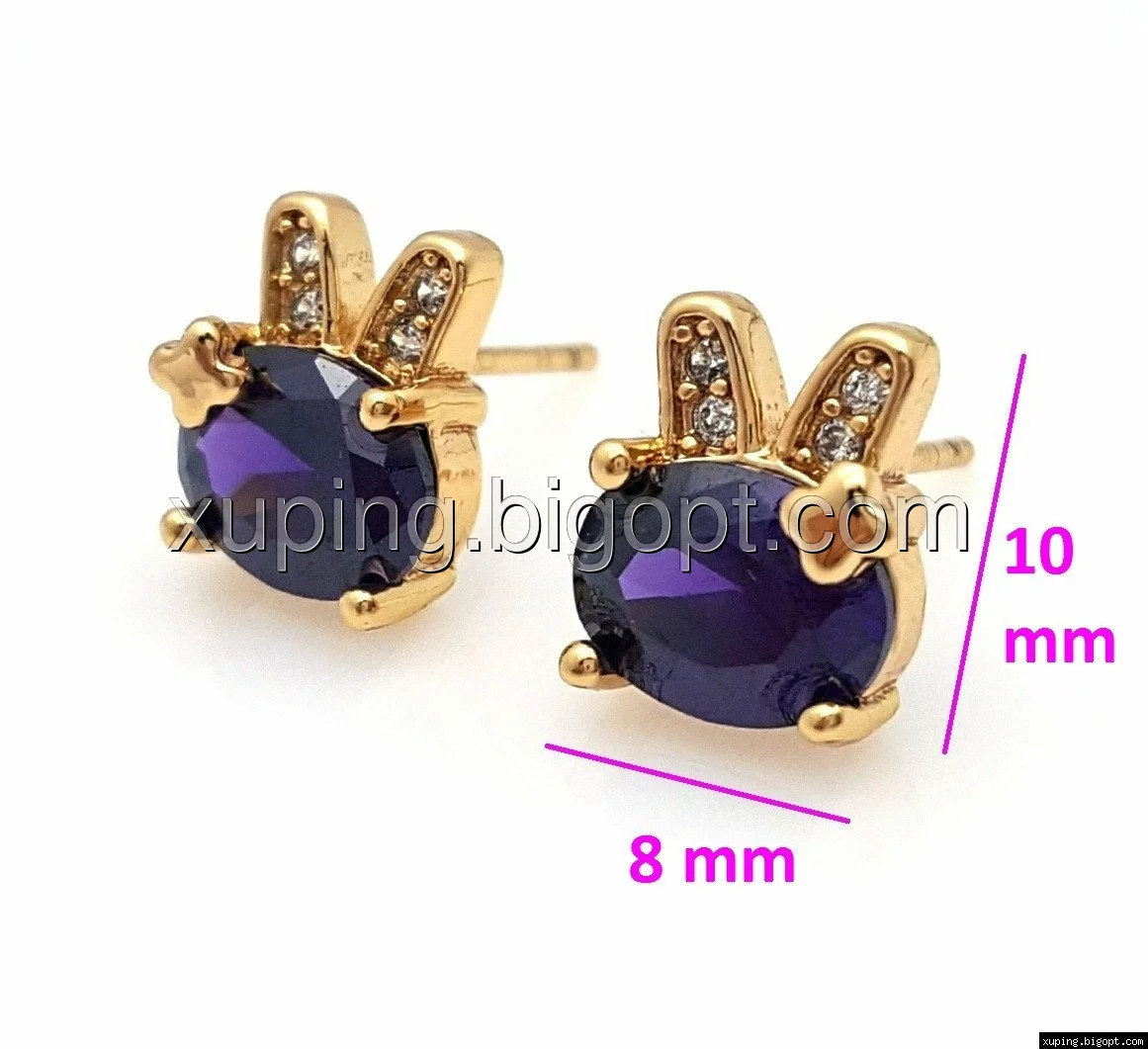 Серьги гвоздики 704562, Зайченок с фиолетовым цирконием, позолота