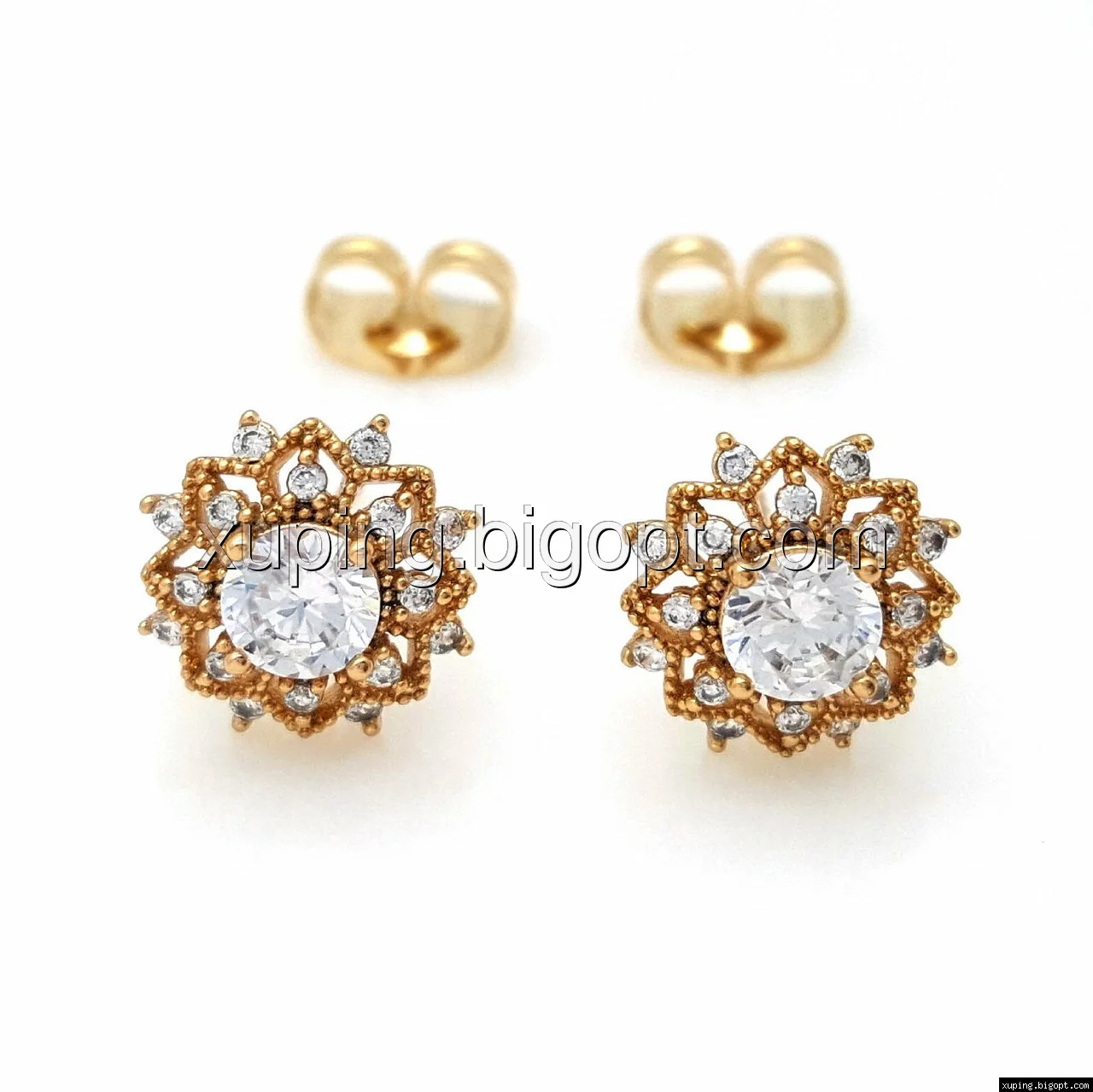 Серьги гвоздики, Ажурный Цветочек в россыпи камней, позолота Xuping