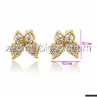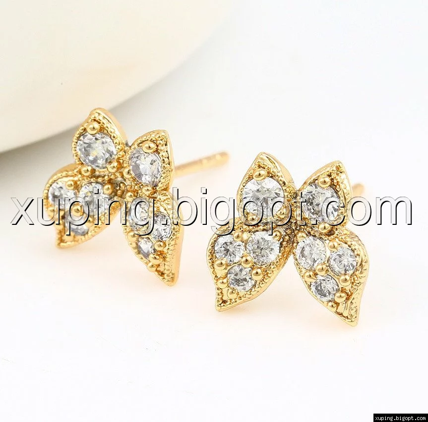 Серьги гвоздики, Бабочка с цирконием, позолота