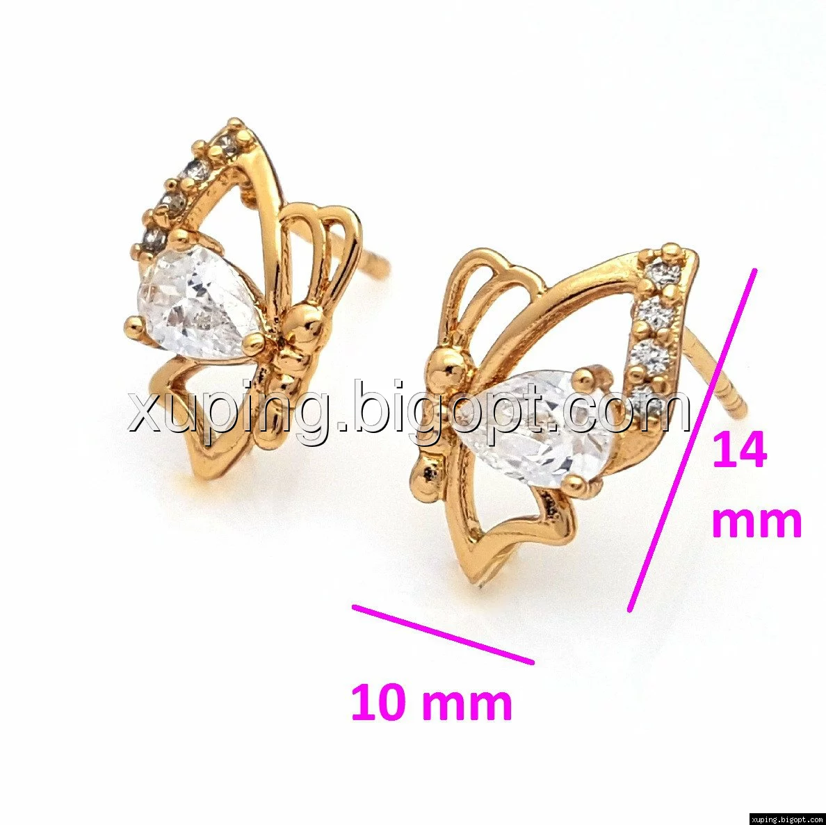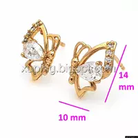 Серьги гвоздики, Бабочка с цирконием, позолота