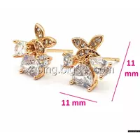 Серьги гвоздики, Бабочка с цирконием, позолота