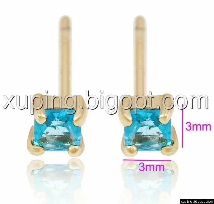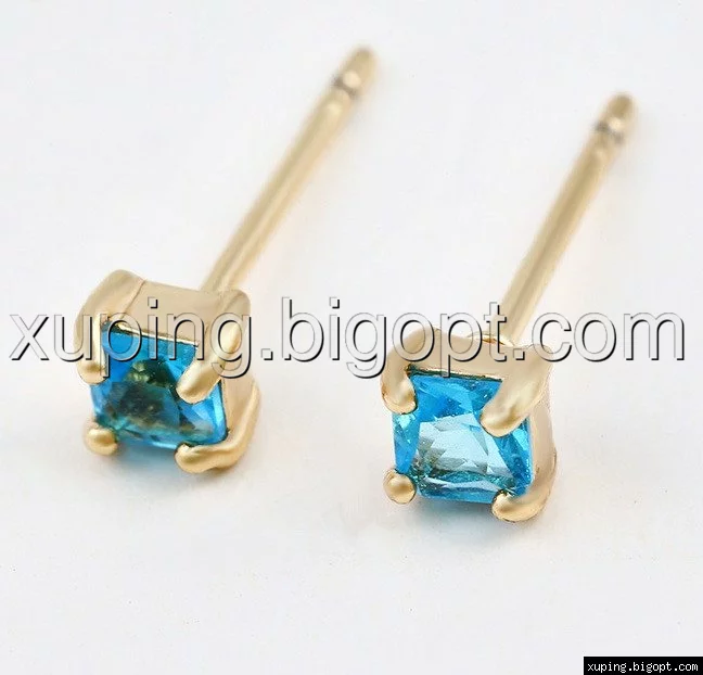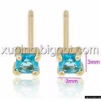 Серьги гвоздики, бирюзовый цирконий, позолота