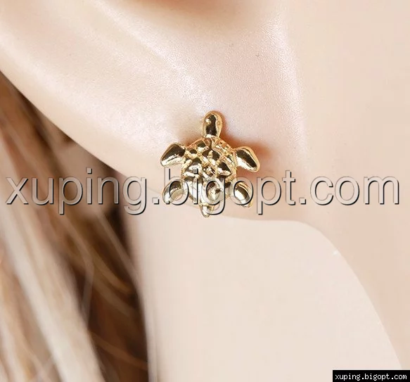 Серьги гвоздики Черепашка, позолота