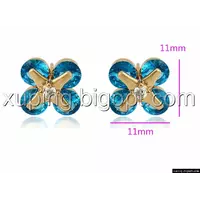 Серьги гвоздики, Четырехлистник с голубым цирконием, позолота