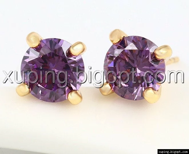 Серьги гвоздики, фиолетовый цирконий, позолота