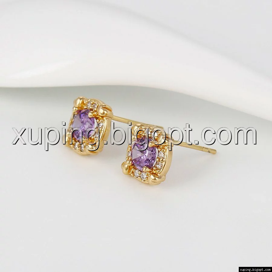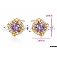 Серьги гвоздики, Фиолетовый цирконий, позолота