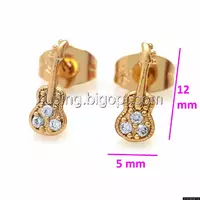 Серьги гвоздики, Гитара, с цирконием, позолота Xuping