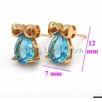 Серьги гвоздики, Капелька с цирконием под топаз, позолота