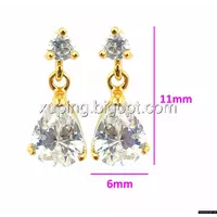 Серьги гвоздики, Капелька, с цирконием, позолота