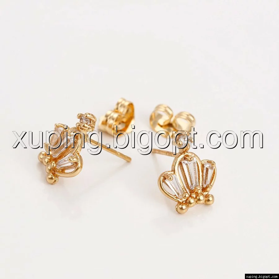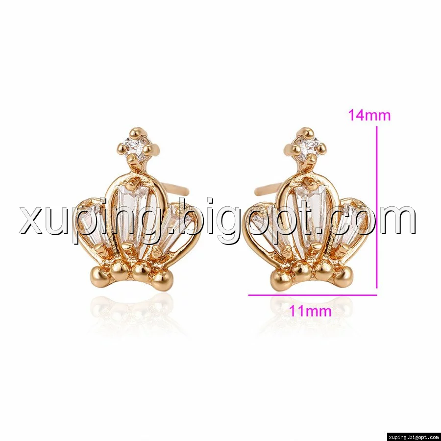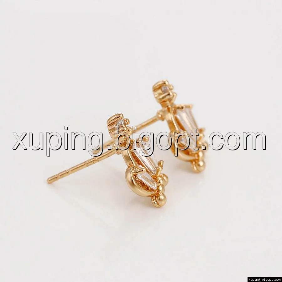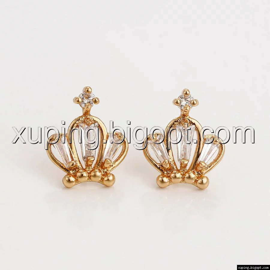 Серьги гвоздики, Корона с багетным цирконием, позолота