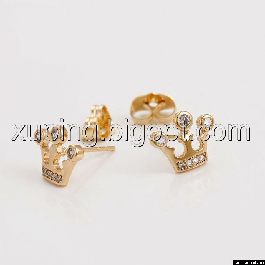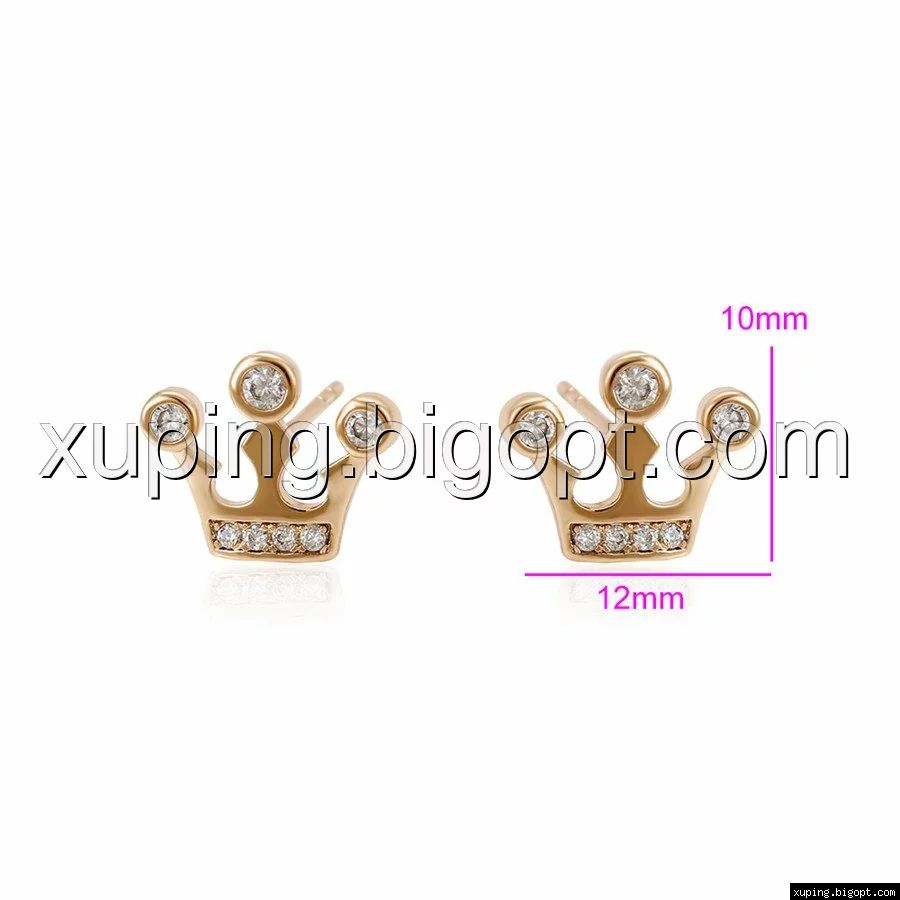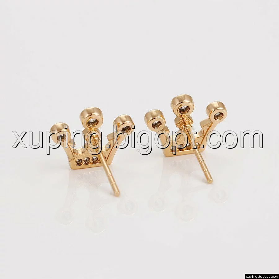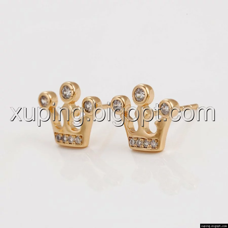 Серьги гвоздики, Корона с цирконием, позолота