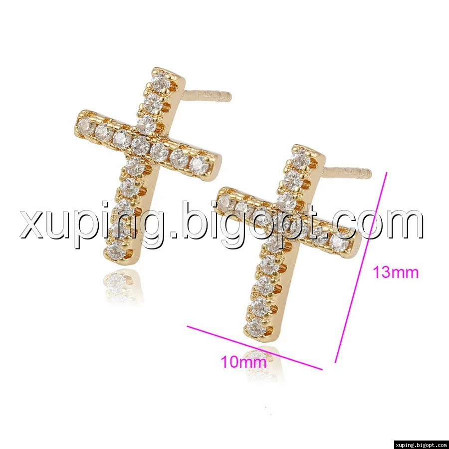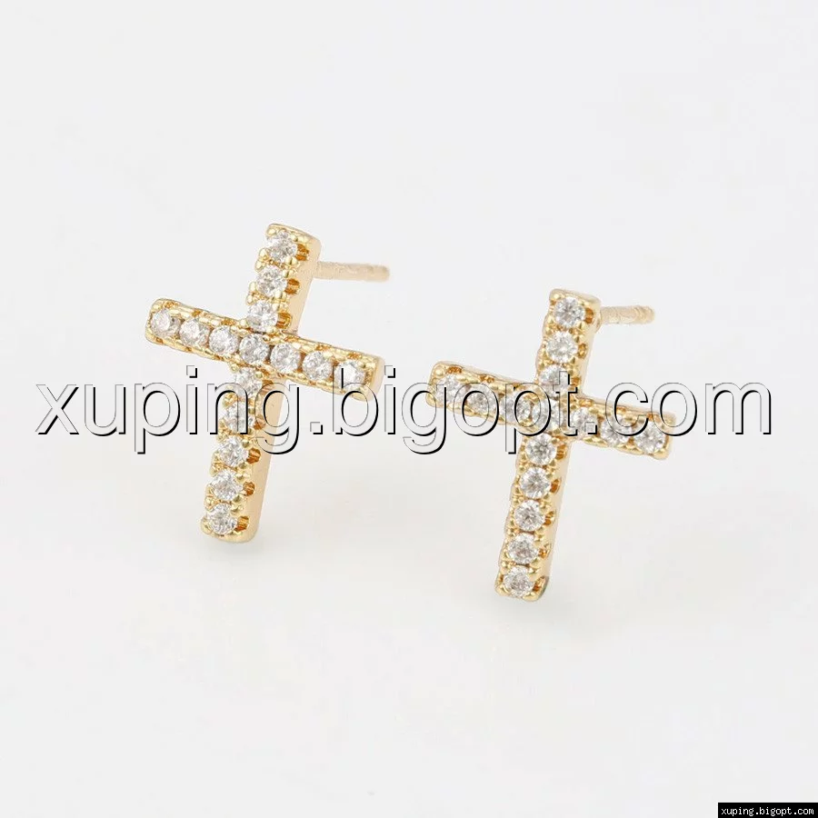 Серьги гвоздики, Крестик с цирконием, позолота