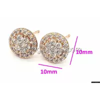 Серьги гвоздики, Круг с инрустацией циркония, позолота