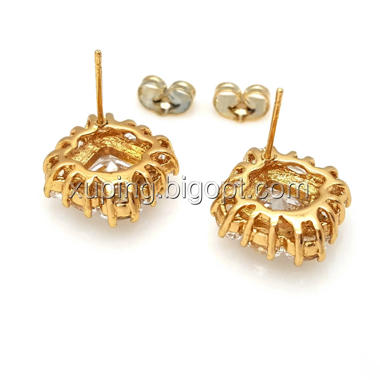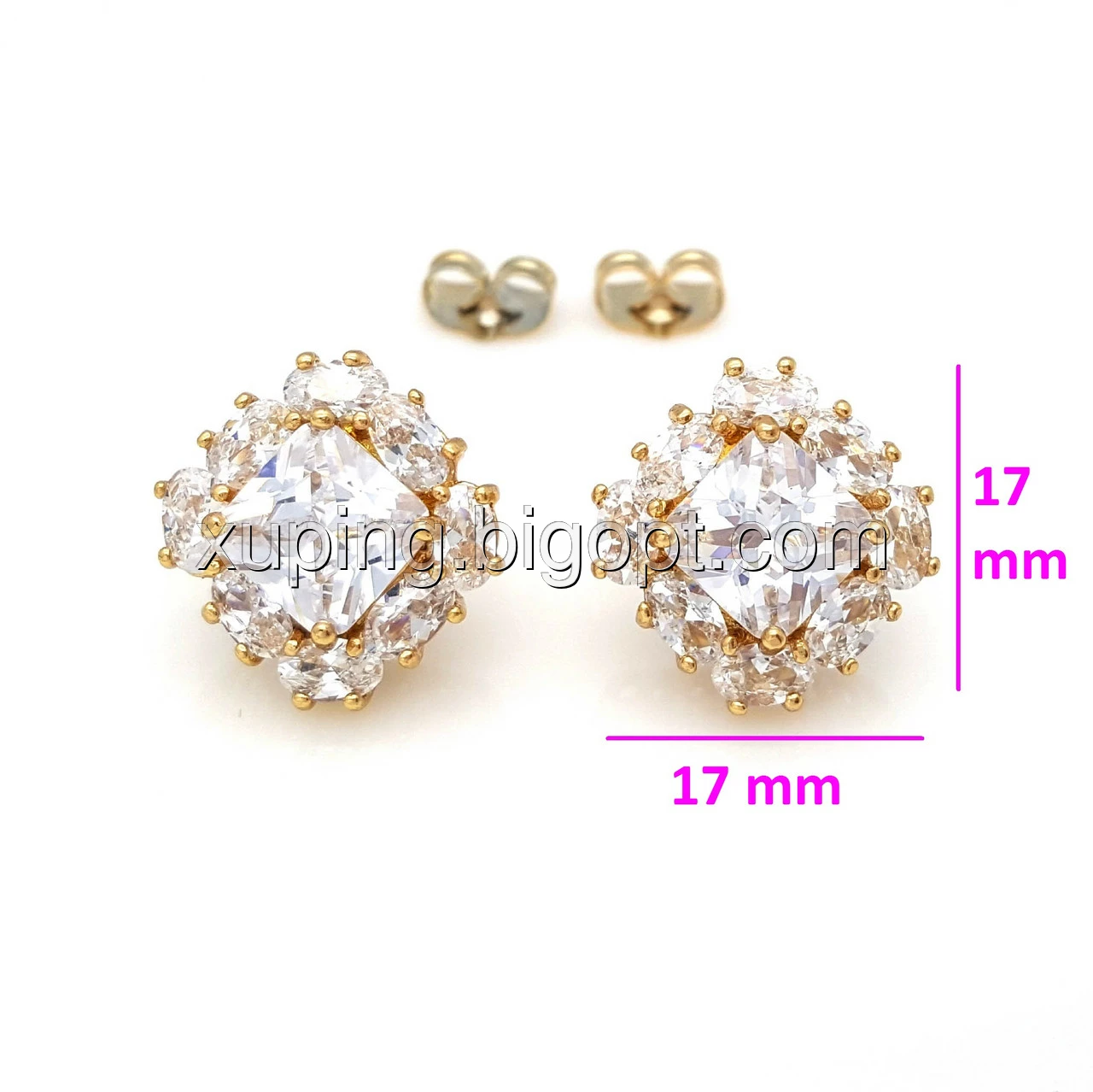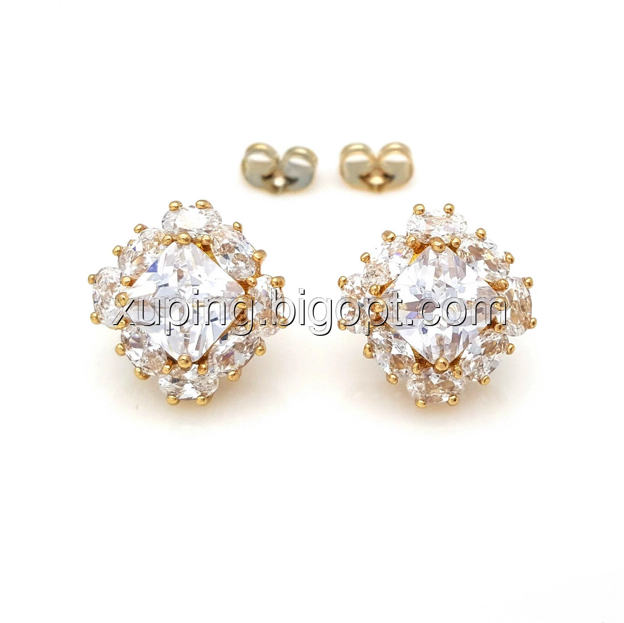 Серьги гвоздики, Квадрат с циркония, позолота Xuping