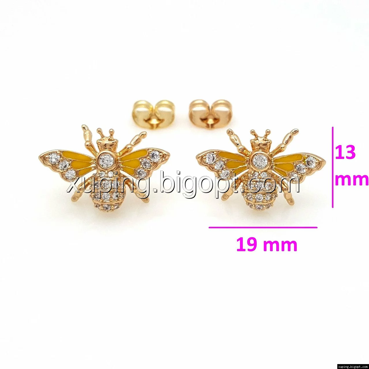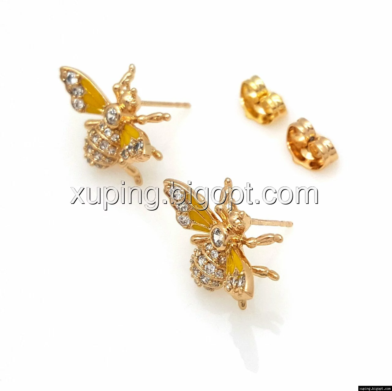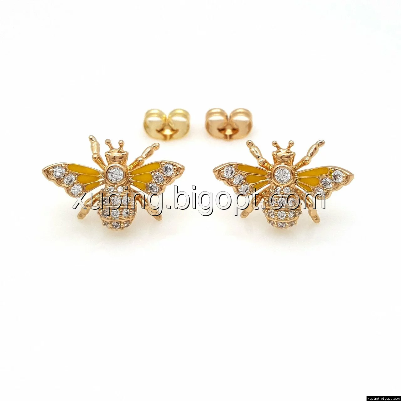 Серьги гвоздики, Пчела с желтой эмалью и россыпью камней, позолота