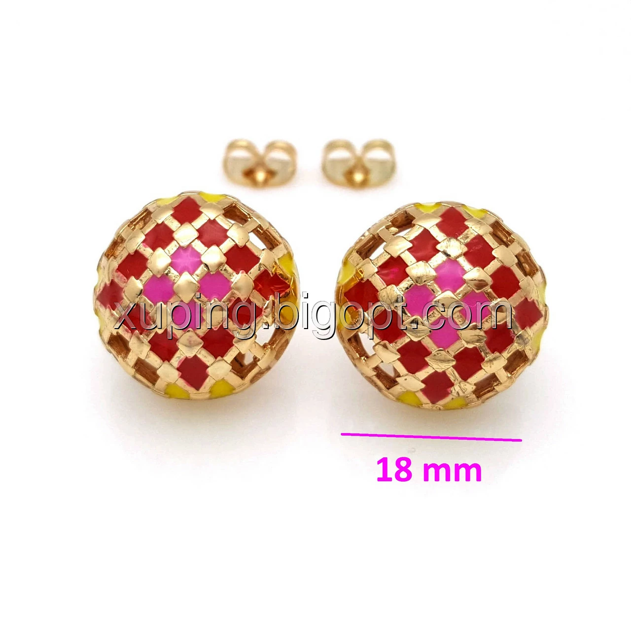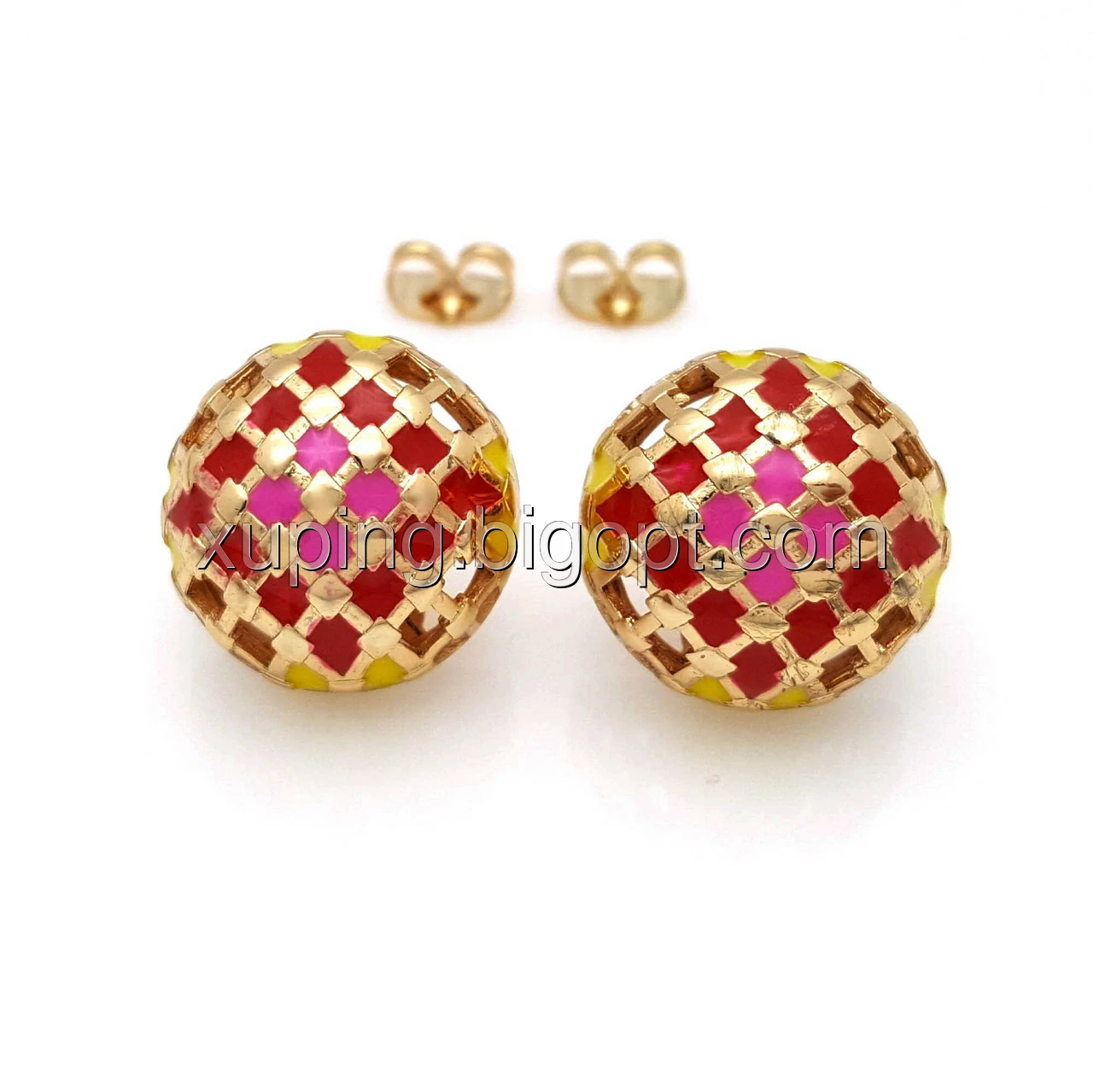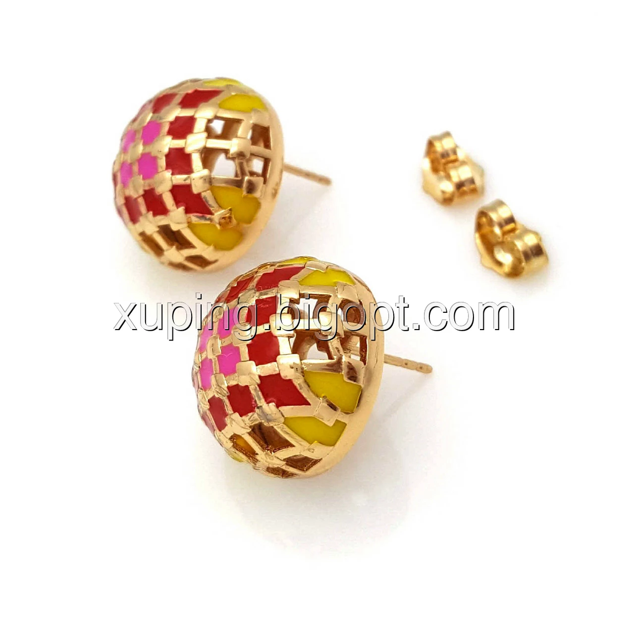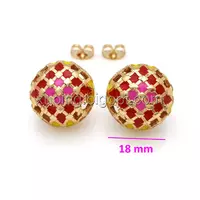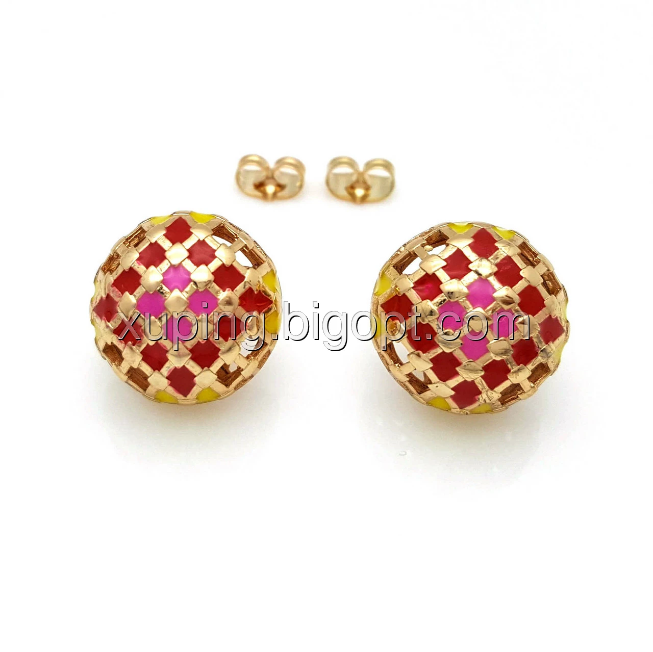 Серьги гвоздики, Полушар с красной эмалью, позолота