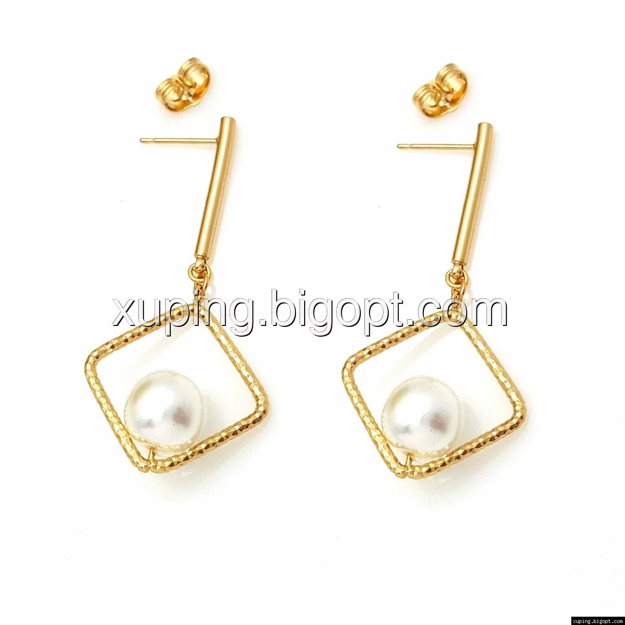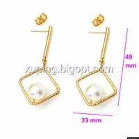 Серьги гвоздики, Ромб с Жемчужиной, позолота Xuping