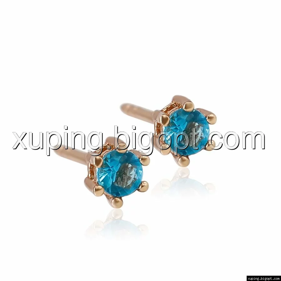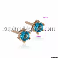 Серьги гвоздики, с бирюзовым цирконием, позолота
