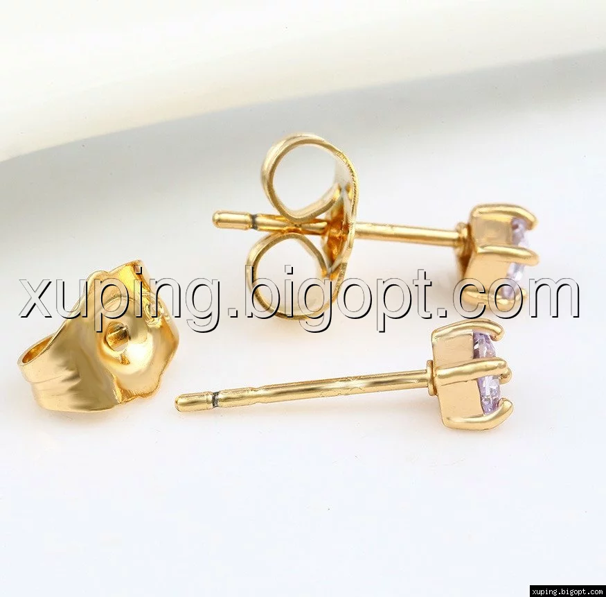 Серьги гвоздики с фиалковым цирконием, позолота