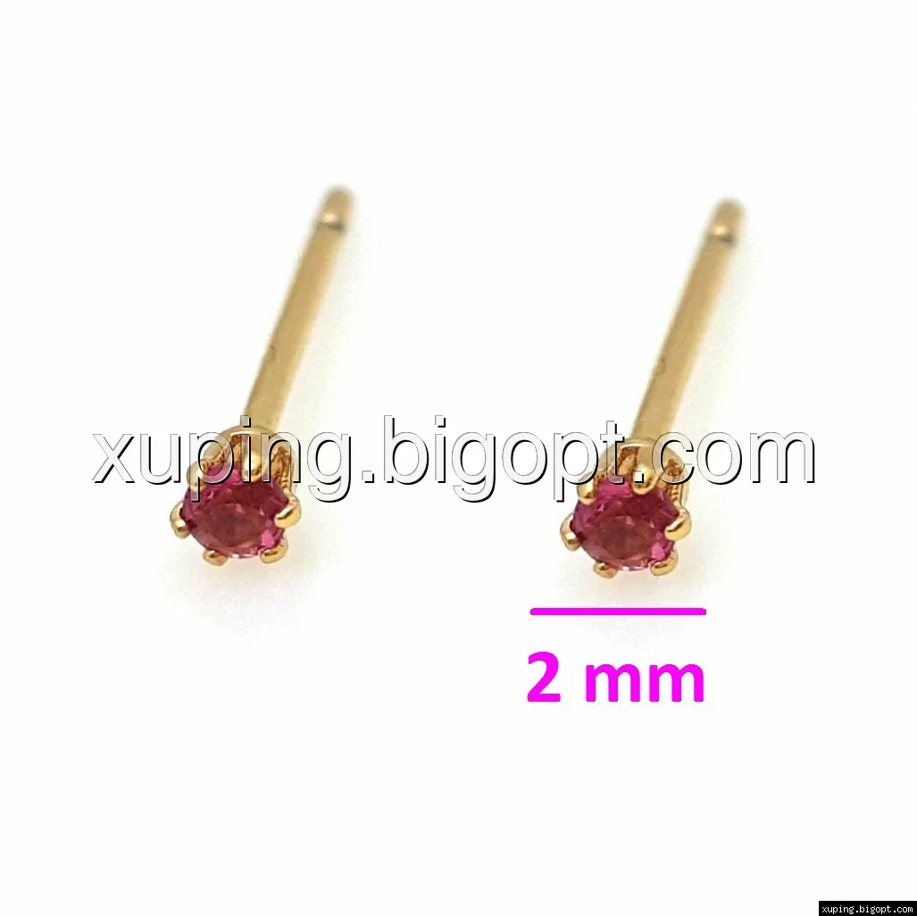 Сережки гвоздики, з червоним цирконієм 2 мм, позолота Xuping 18K