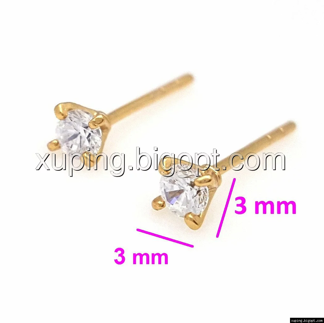 Сережки цвяшки з прозорим цирконієм 3 мм, позолота Xupihg 18К