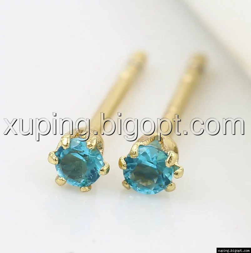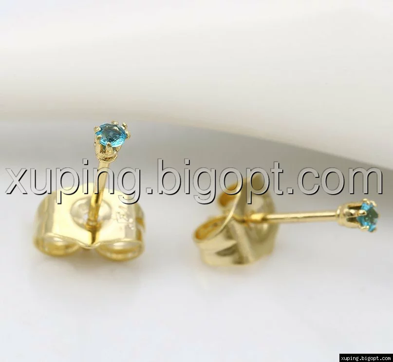 Серьги гвоздики с цирконием под топаз, позолота