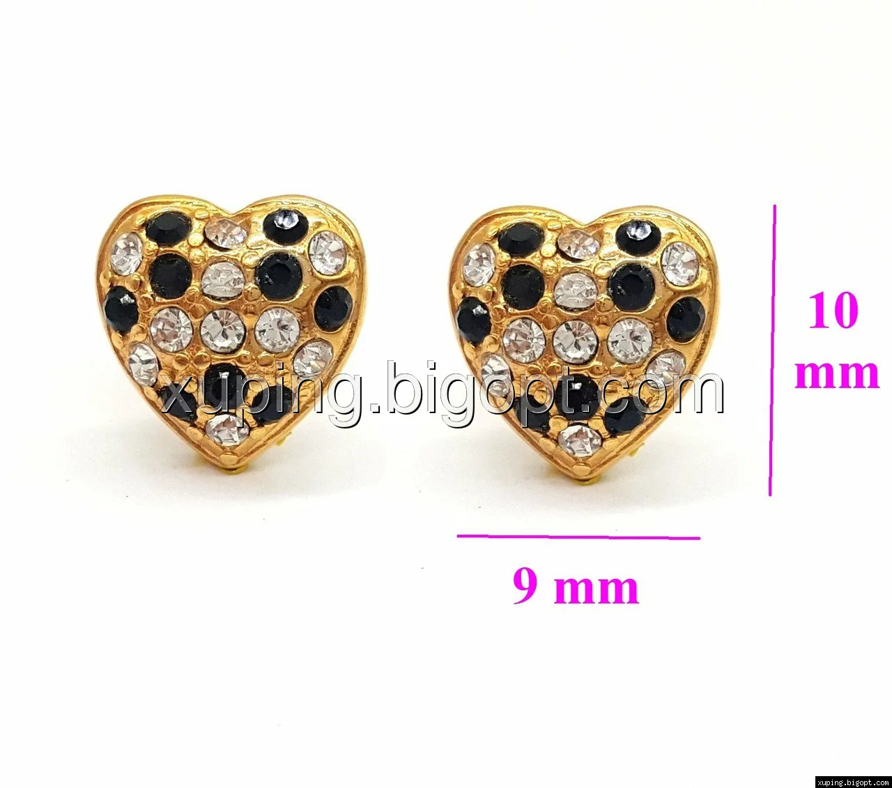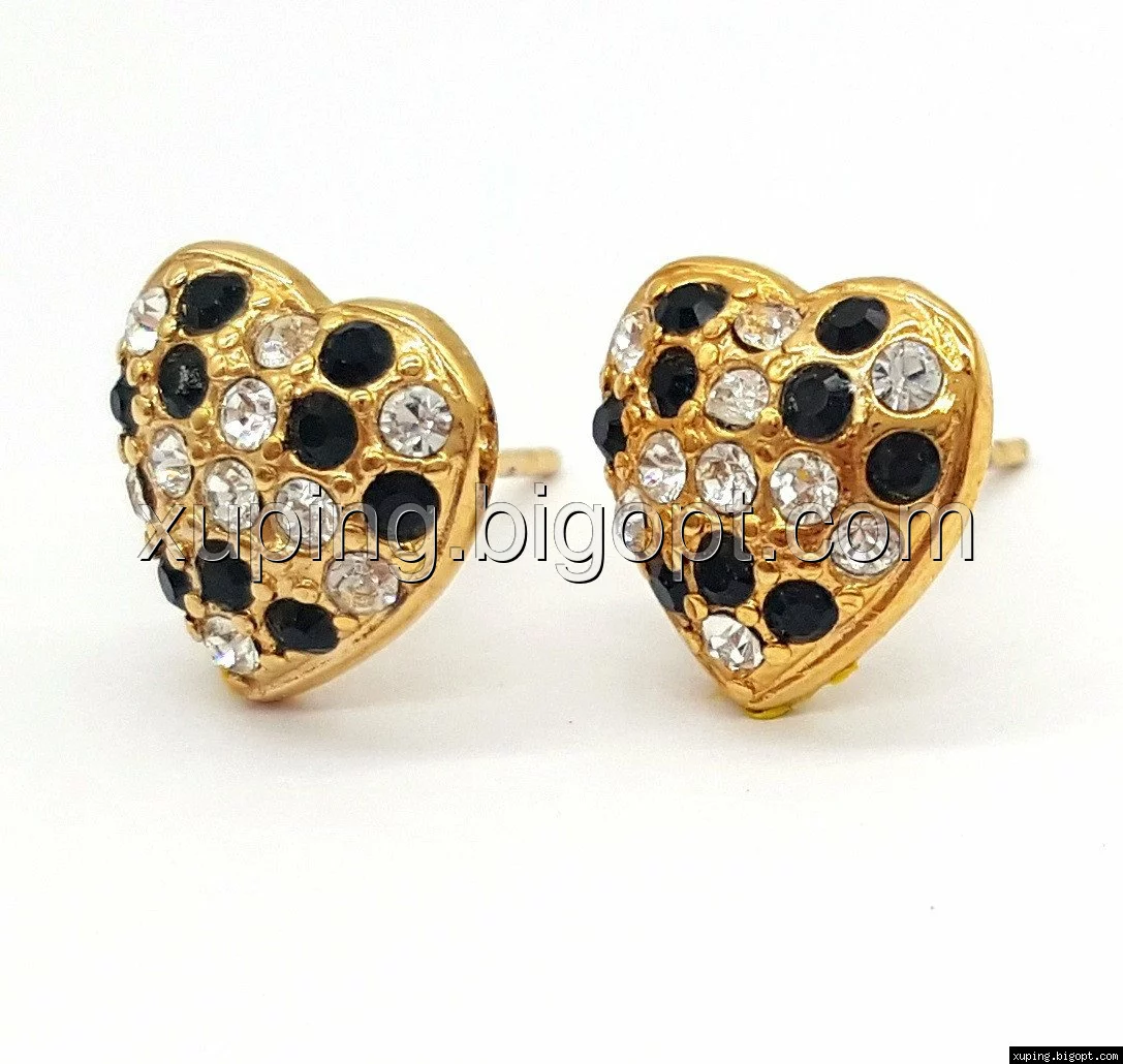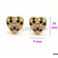 Серьги гвоздики, Сердце с черно-белым цирконием, позолота