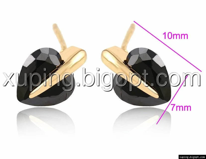 Серьги гвоздики, Сердце с черным цирконием, позолота