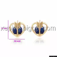 Серьги гвоздики Сердце, синий цирконий, позолота