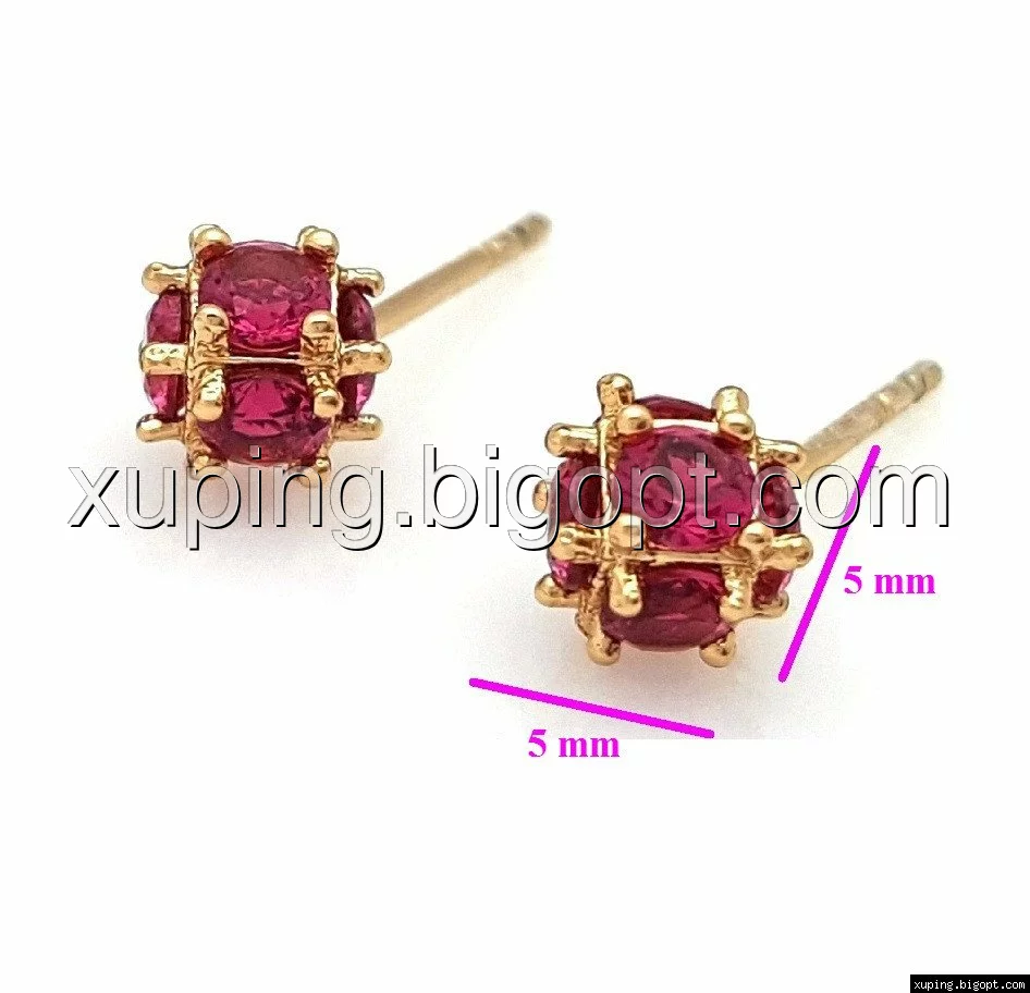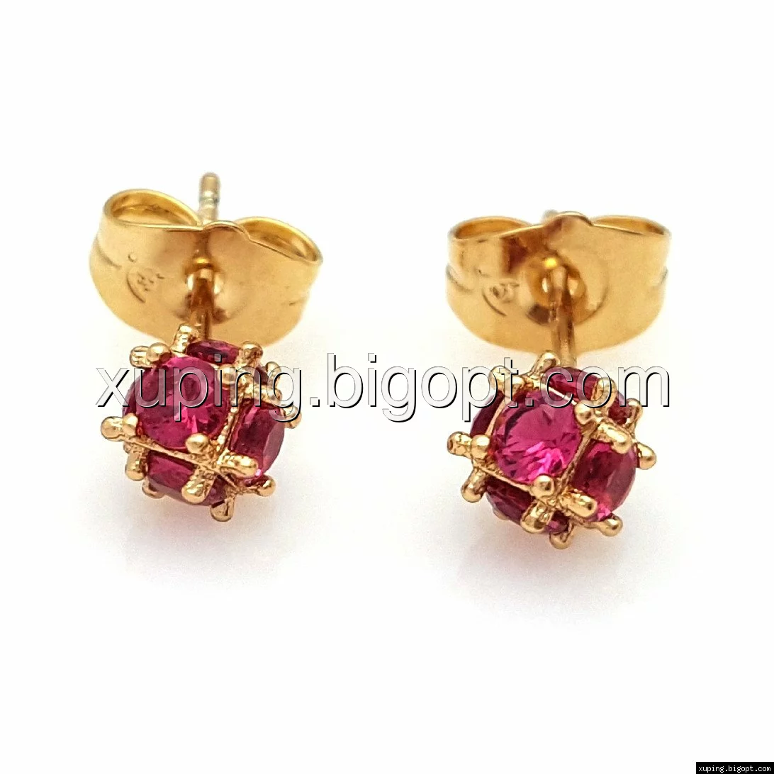Серьги гвоздики, Сфера, с цирконием под рубин, позолота