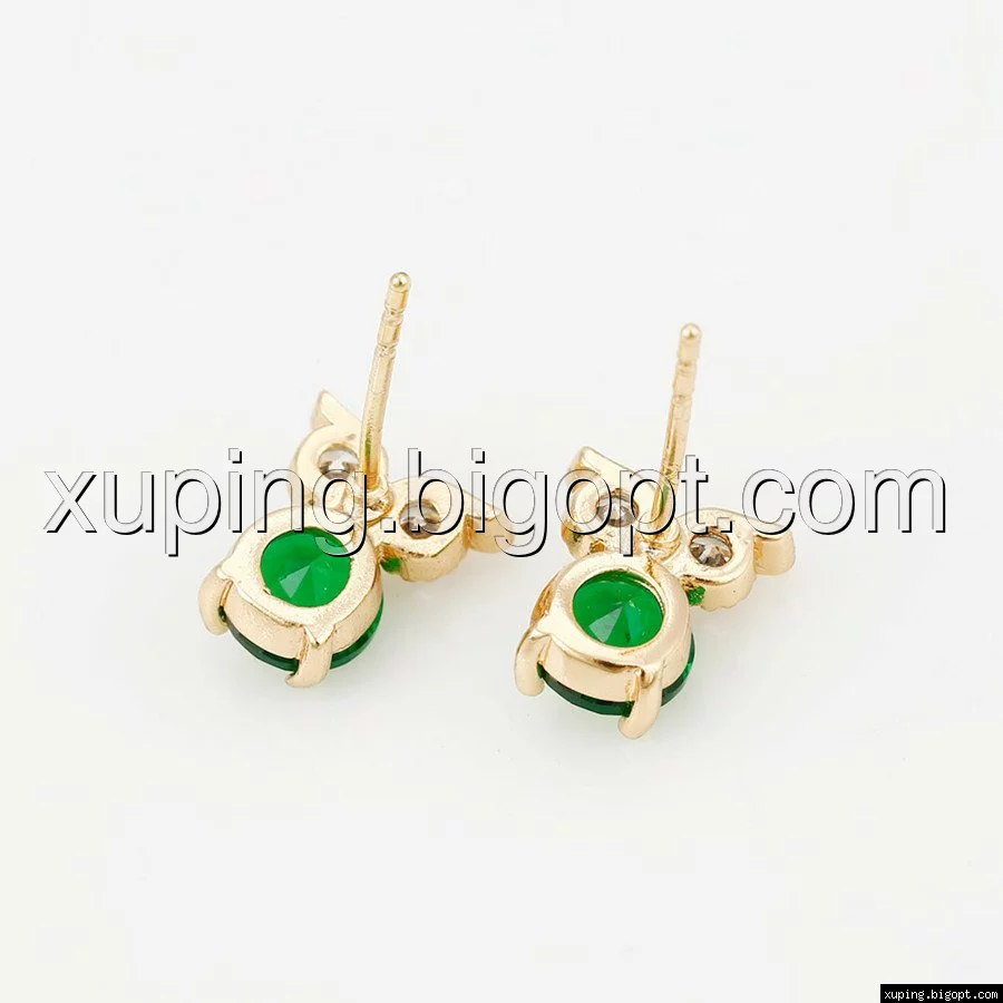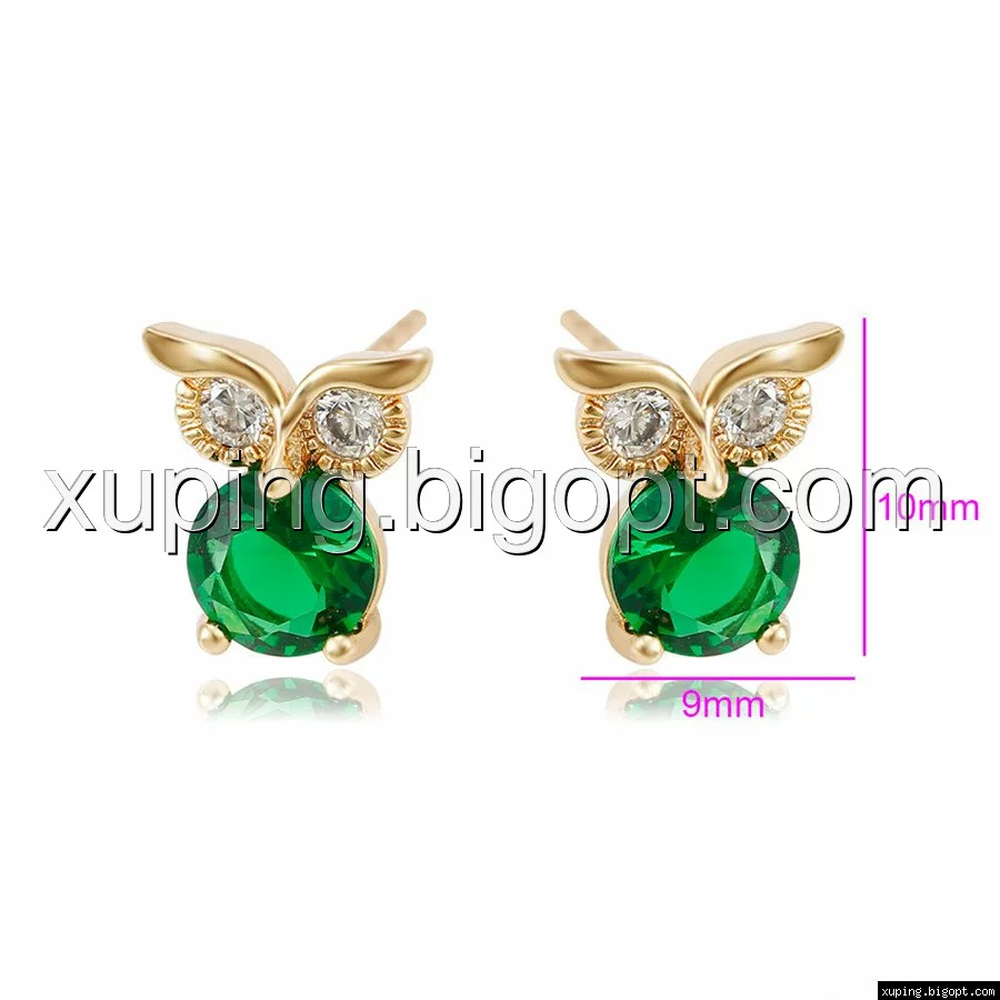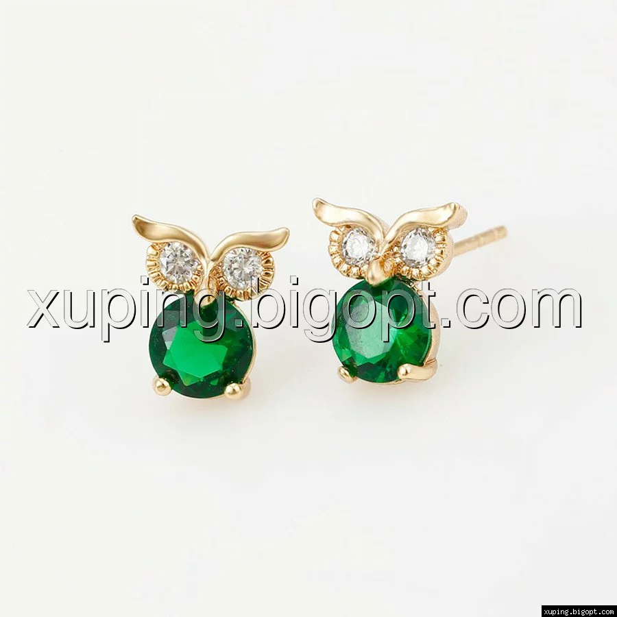 Серьги гвоздики, Сова с зеленым цирконием, позолота