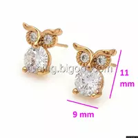 Серьги гвоздики, Совенок, с цирконием, позолота