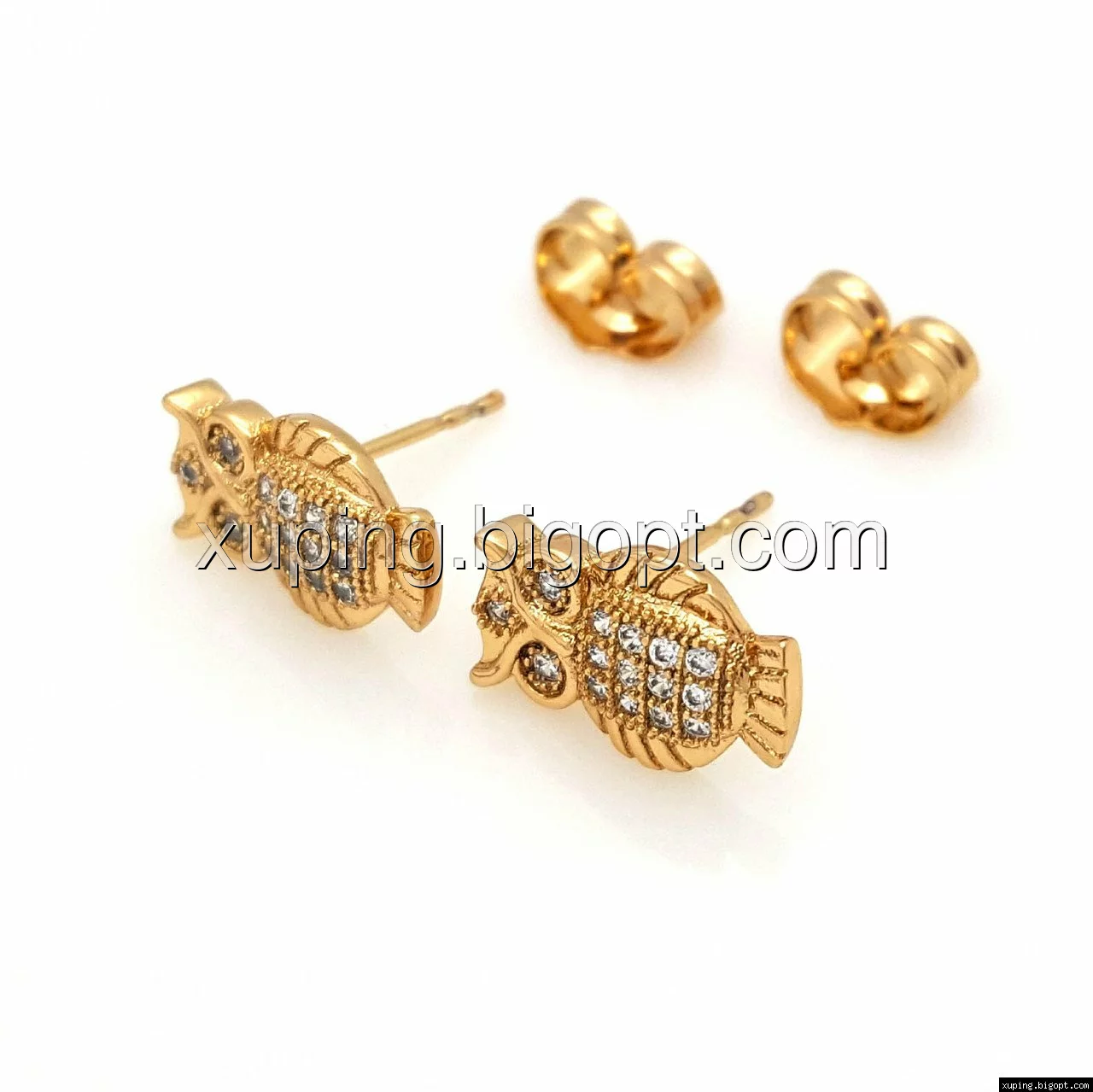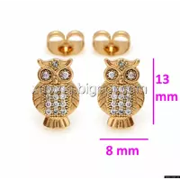 Серьги гвоздики, Совушка с камнями, позолота Xuping