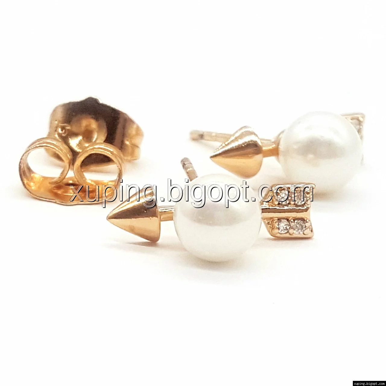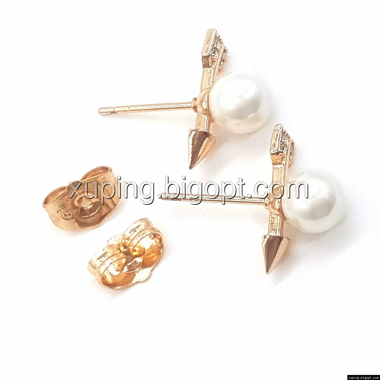 Серьги гвоздики, Стрела с Жемчужиной, позолота