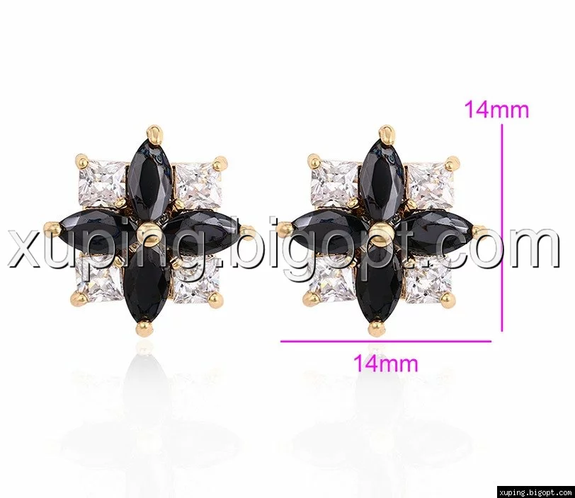 Серьги гвоздики, Цветок с черным цирконием, позолота