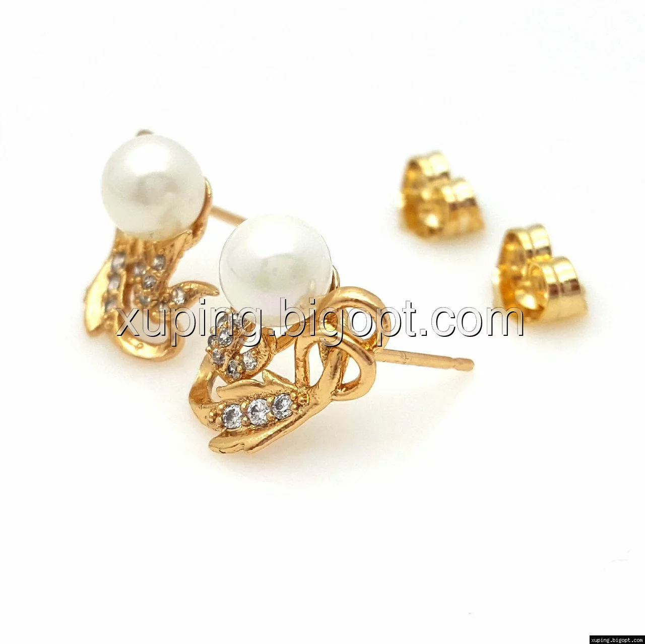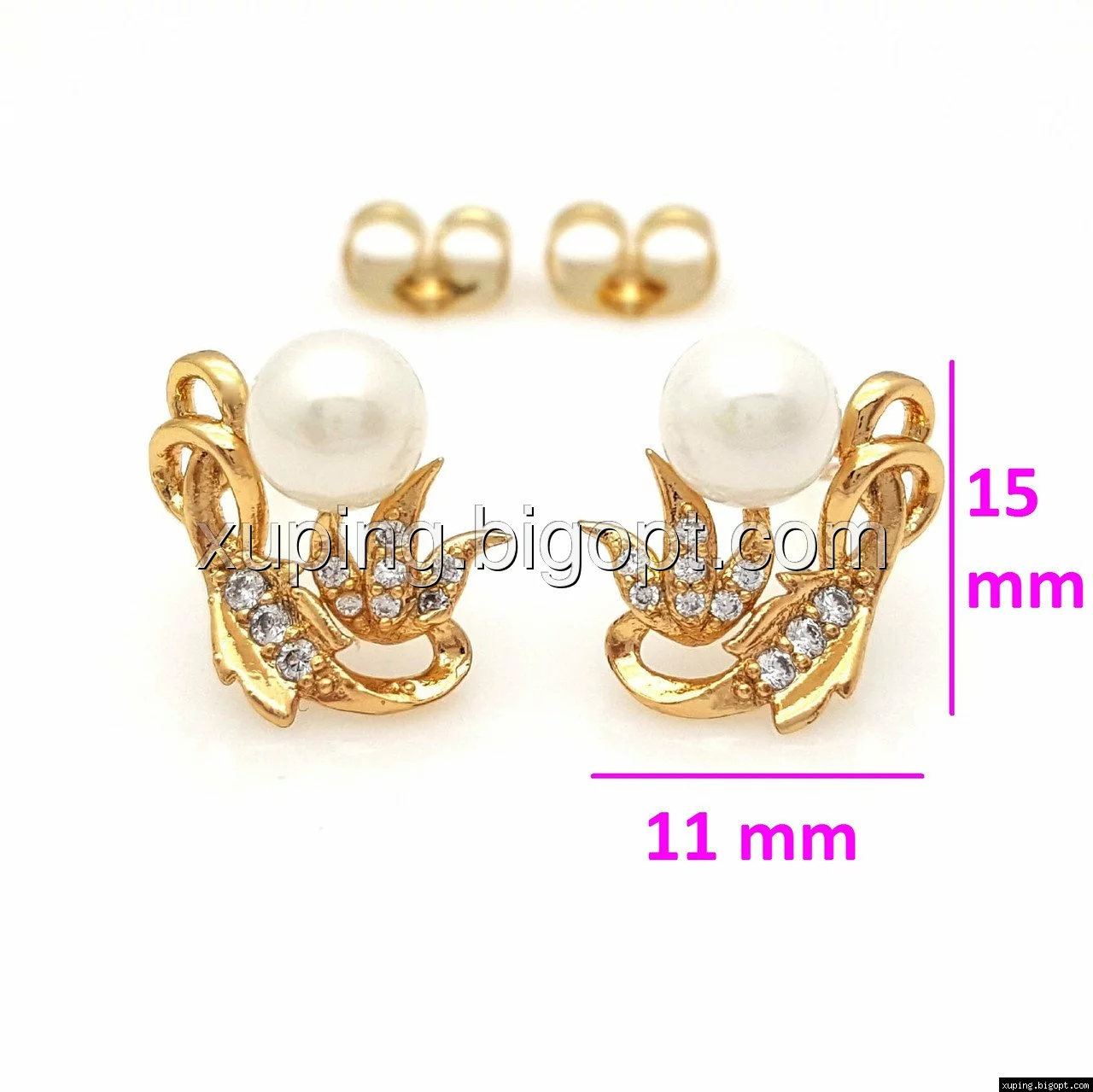 Серьги гвоздики, Веточка с Жемчугом и камнями, позолота Xuping