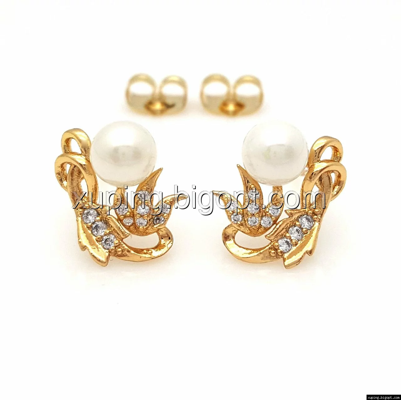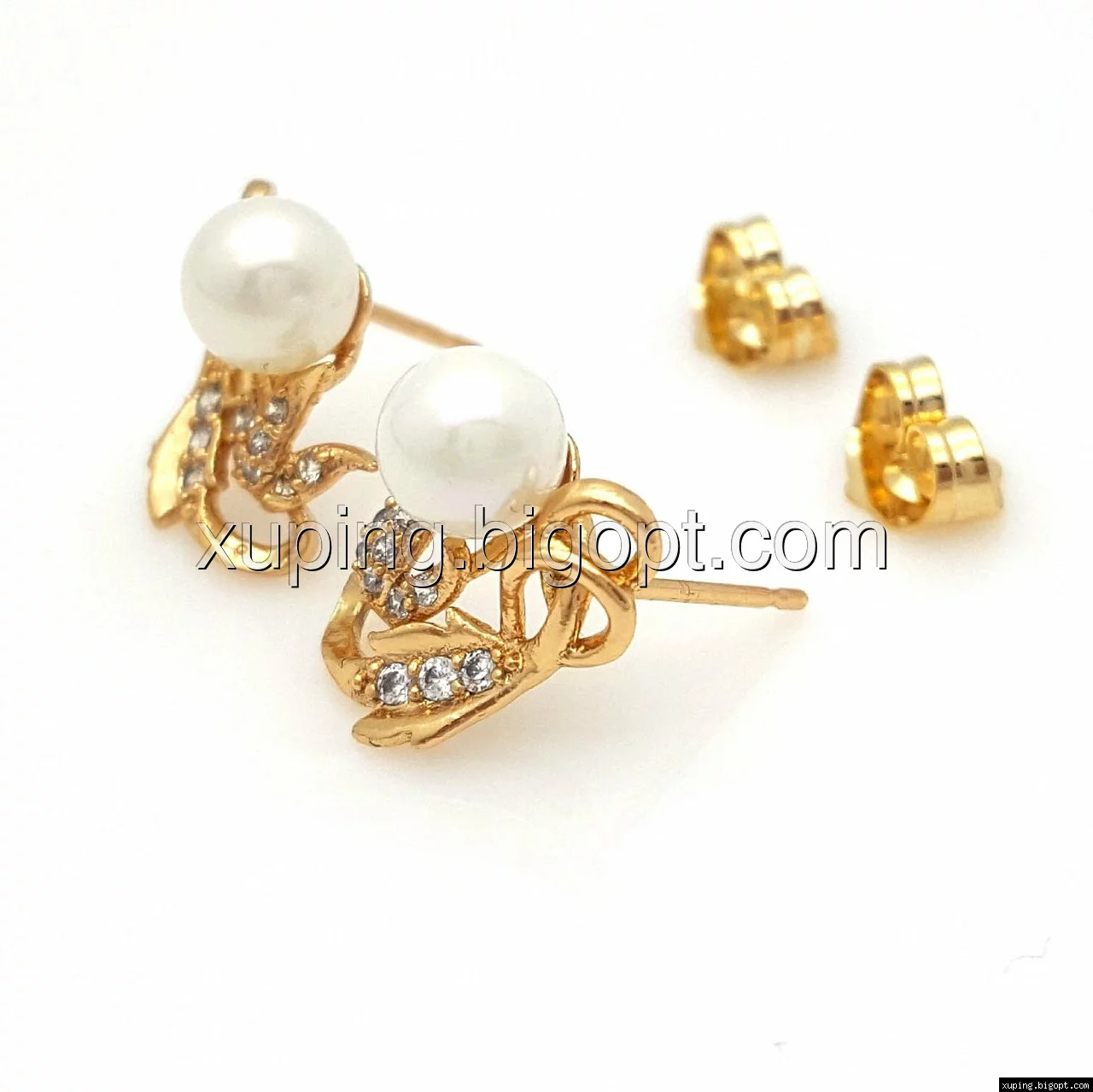 Серьги гвоздики, Веточка с Жемчугом и камнями, позолота Xuping