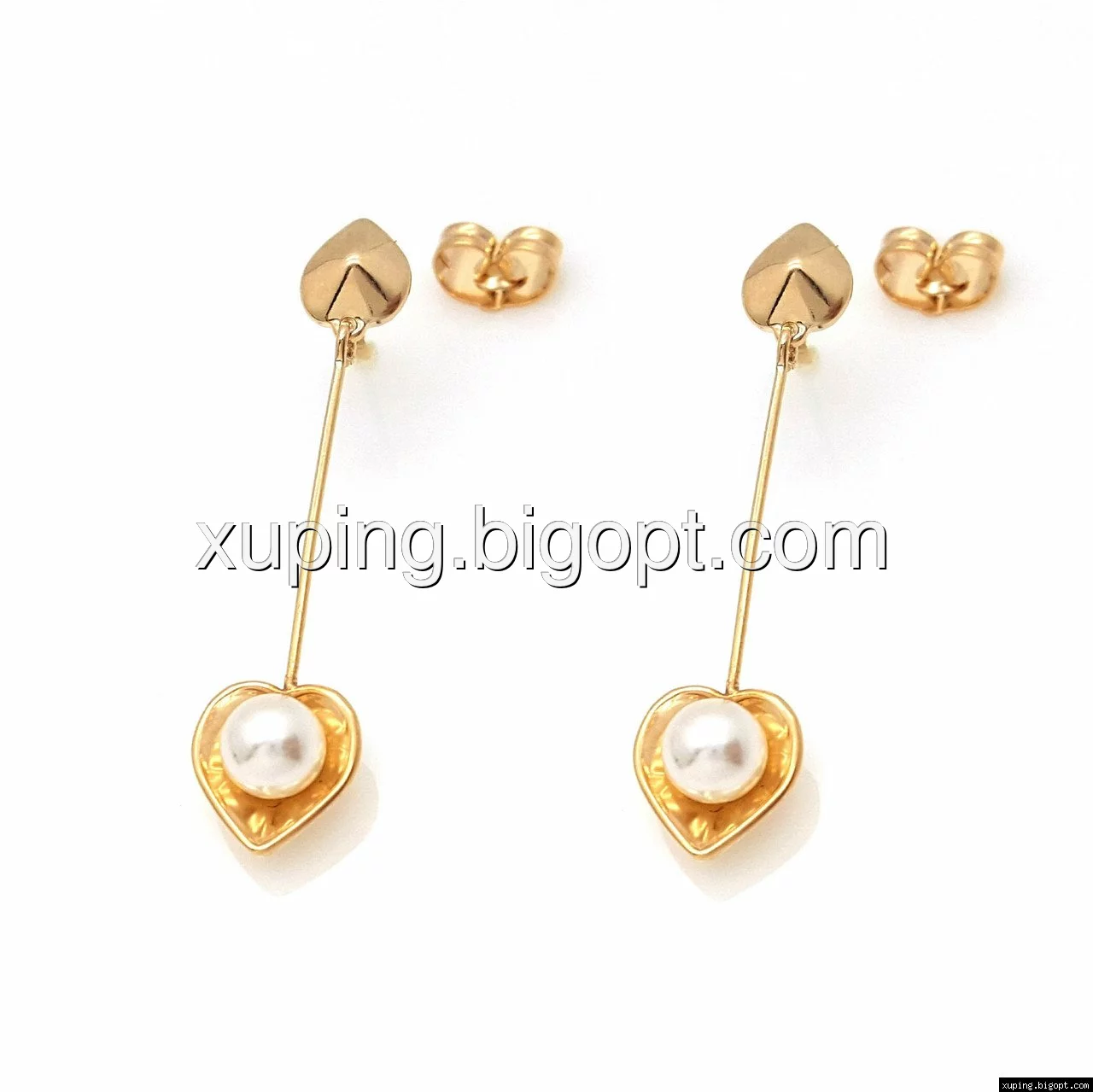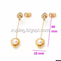 Серьги гвоздики, висюльки Сердце с Жемчугом, позолота Xuping
