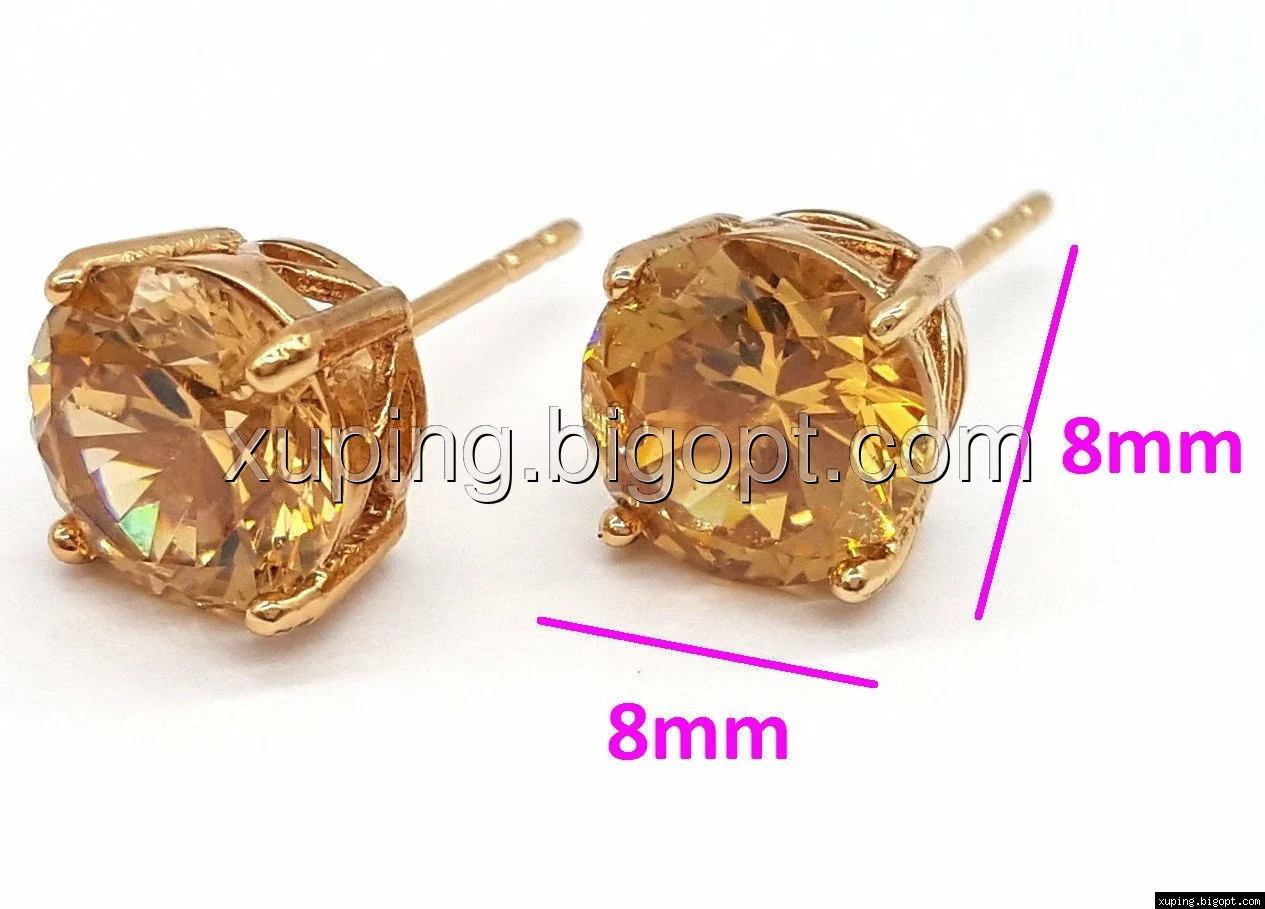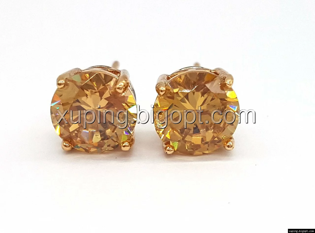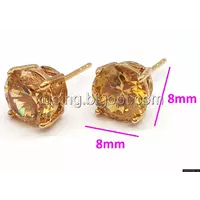 Серьги гвоздики, желтый цирконий, 8мм*8мм