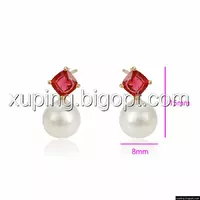 Серьги гвоздики, Жемчужина с красным цирконием, позолота