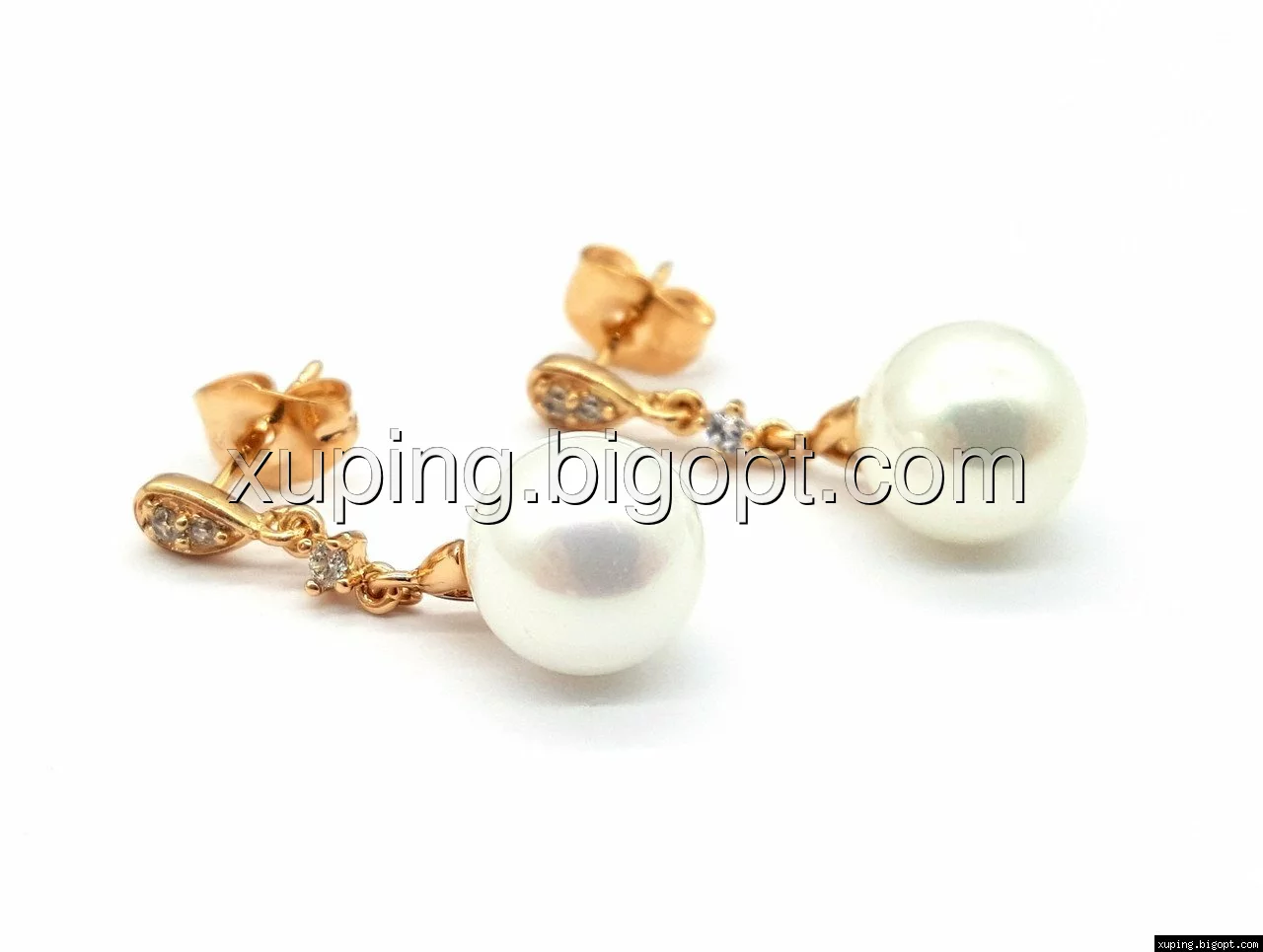 Серьги гвоздики, Жемчужина, с россыпью камней, позолота