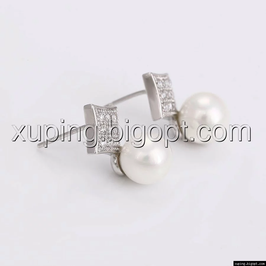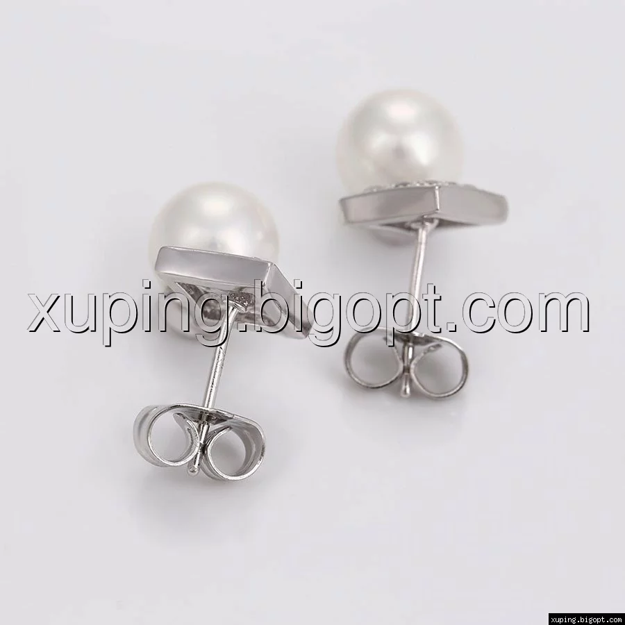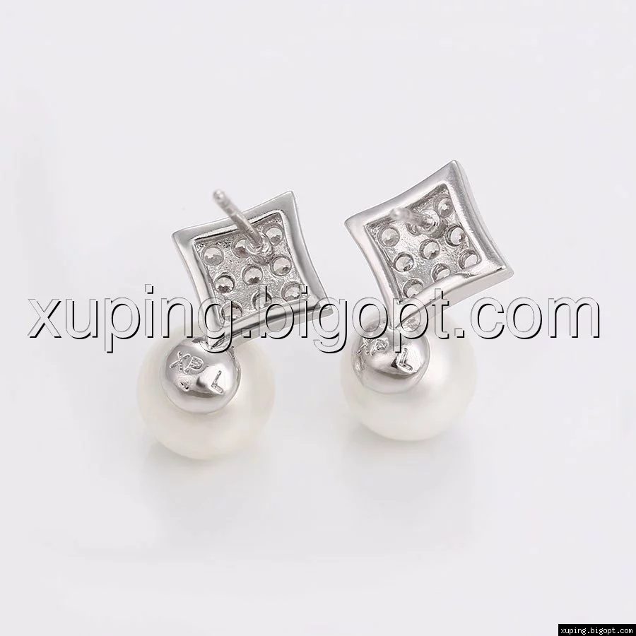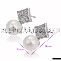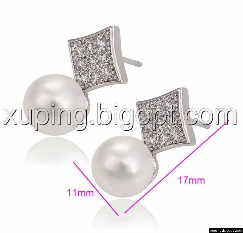 Сережки цвяшки родовані, Перлинка з Ромбіком, вставка цирконій, Xuping