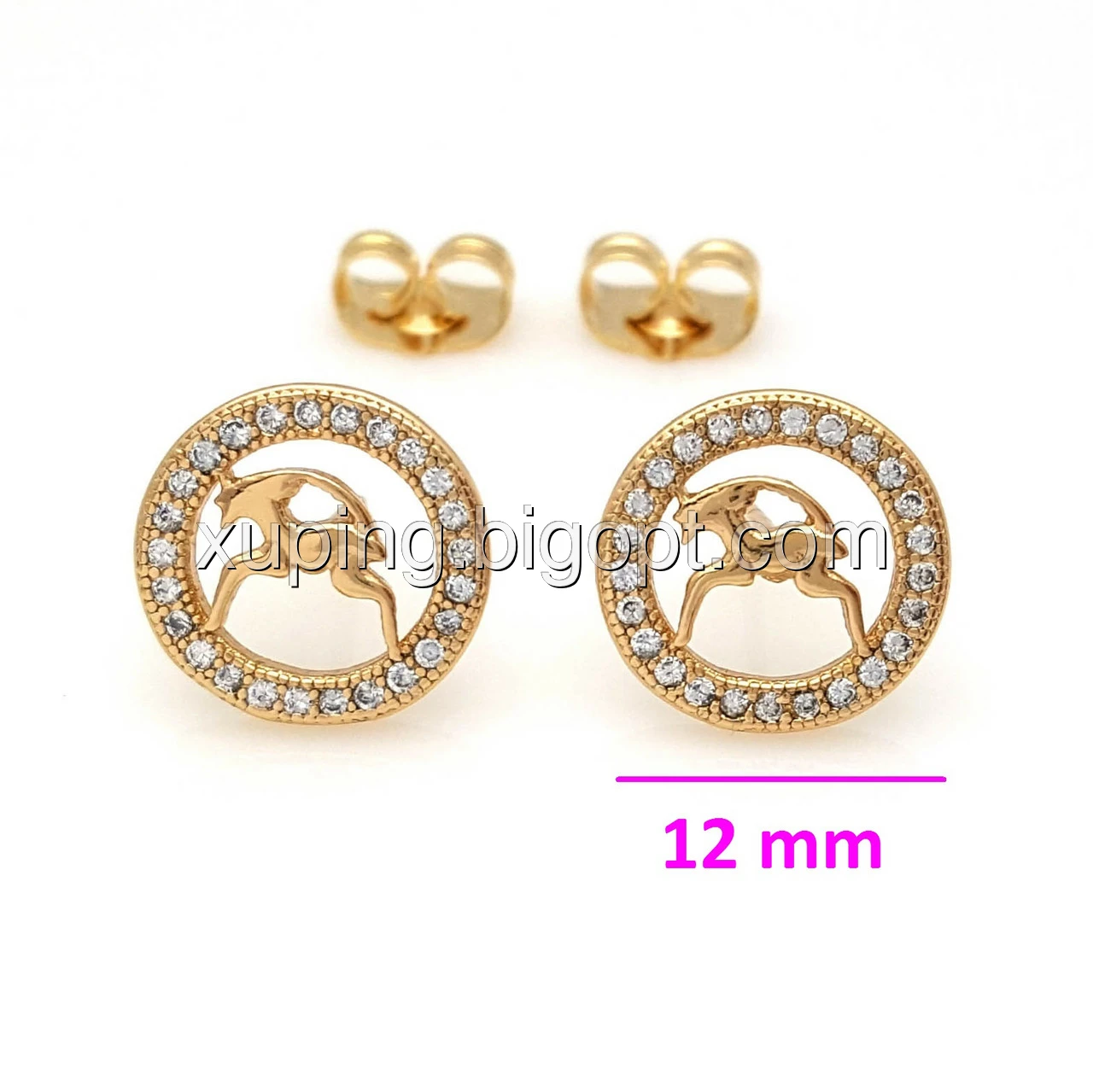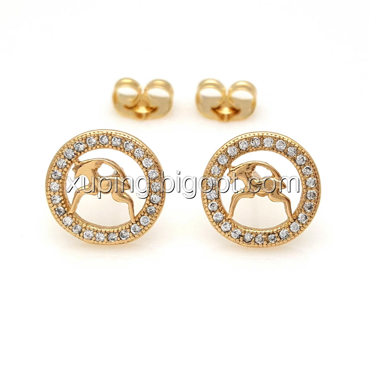 Сережки цвяшки, Знак Зодіаку "Козеріг", з цирконієм, позолота Xuping