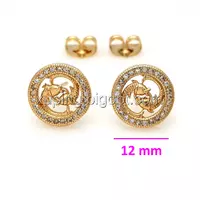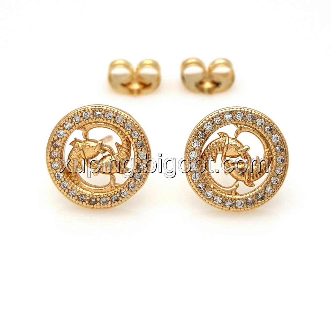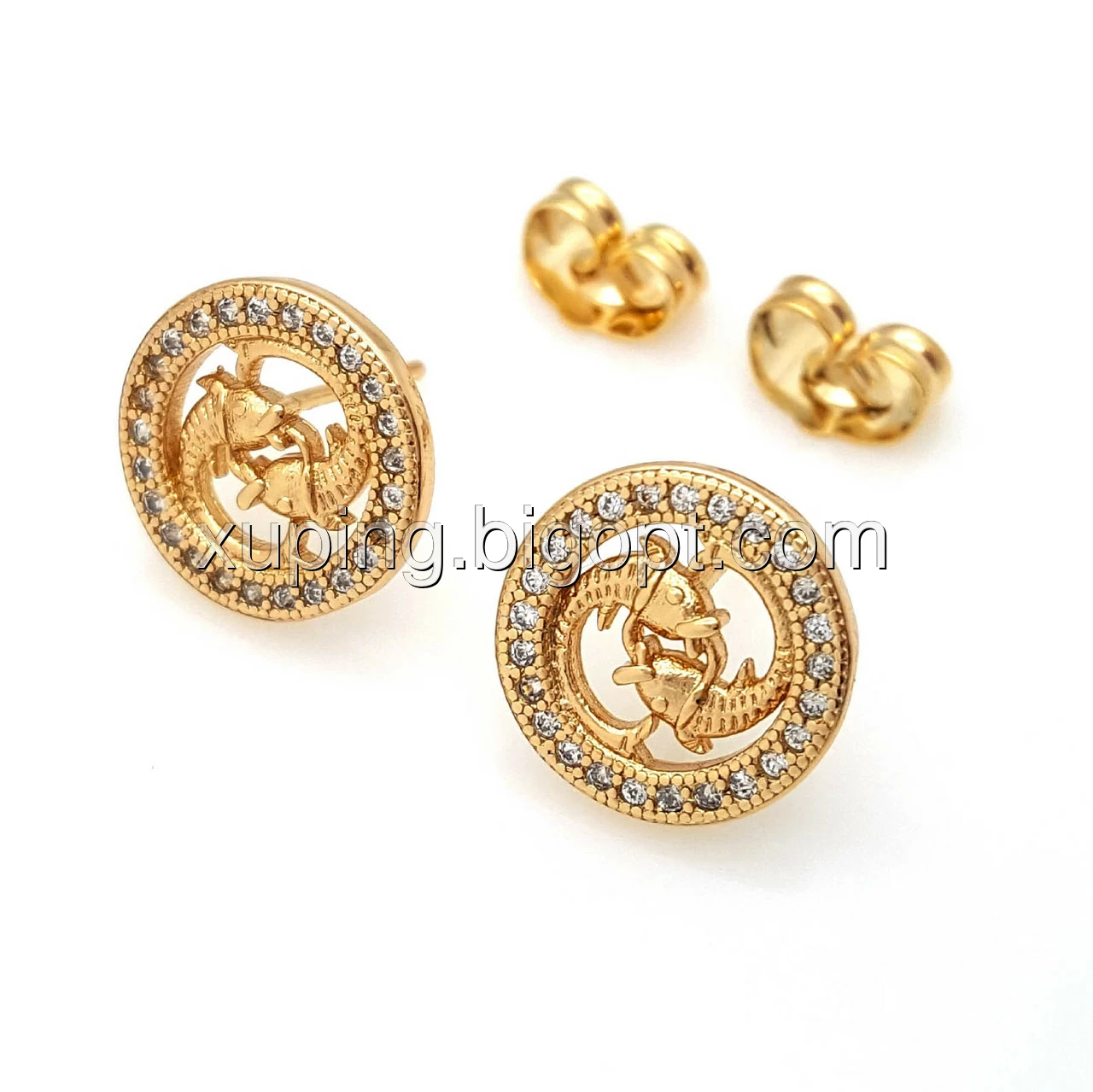 Сережки цвяшки, Знак Зодіаку "Риби", з цирконієм, позолота Xuping