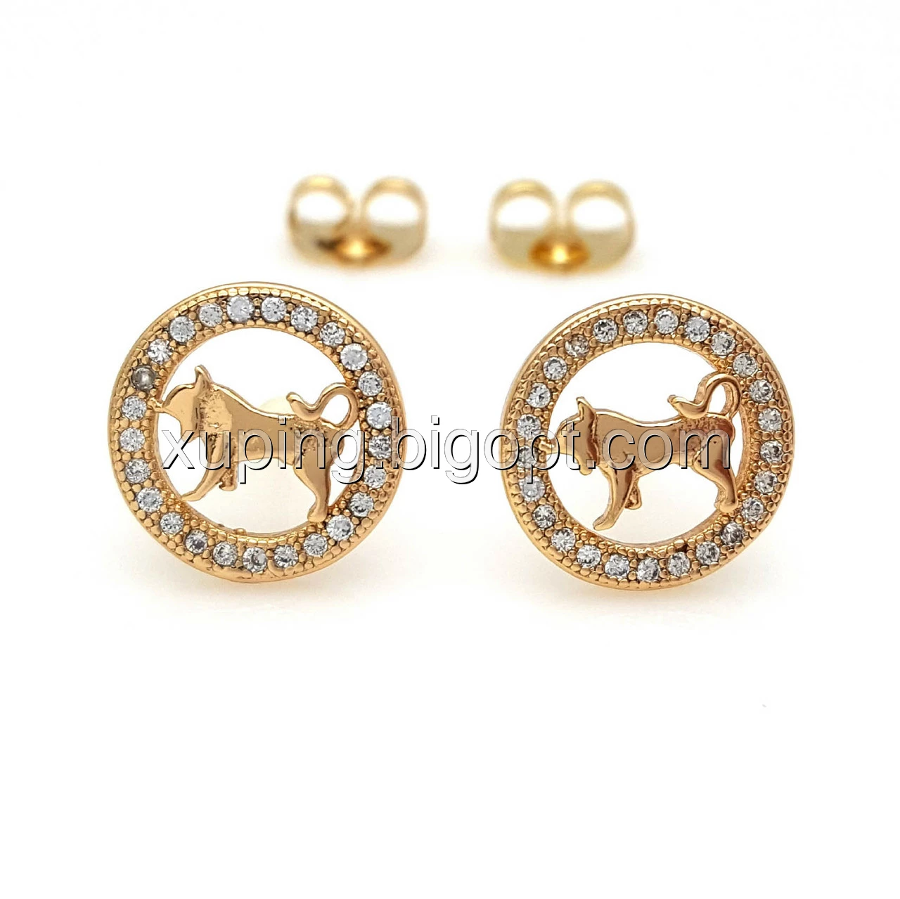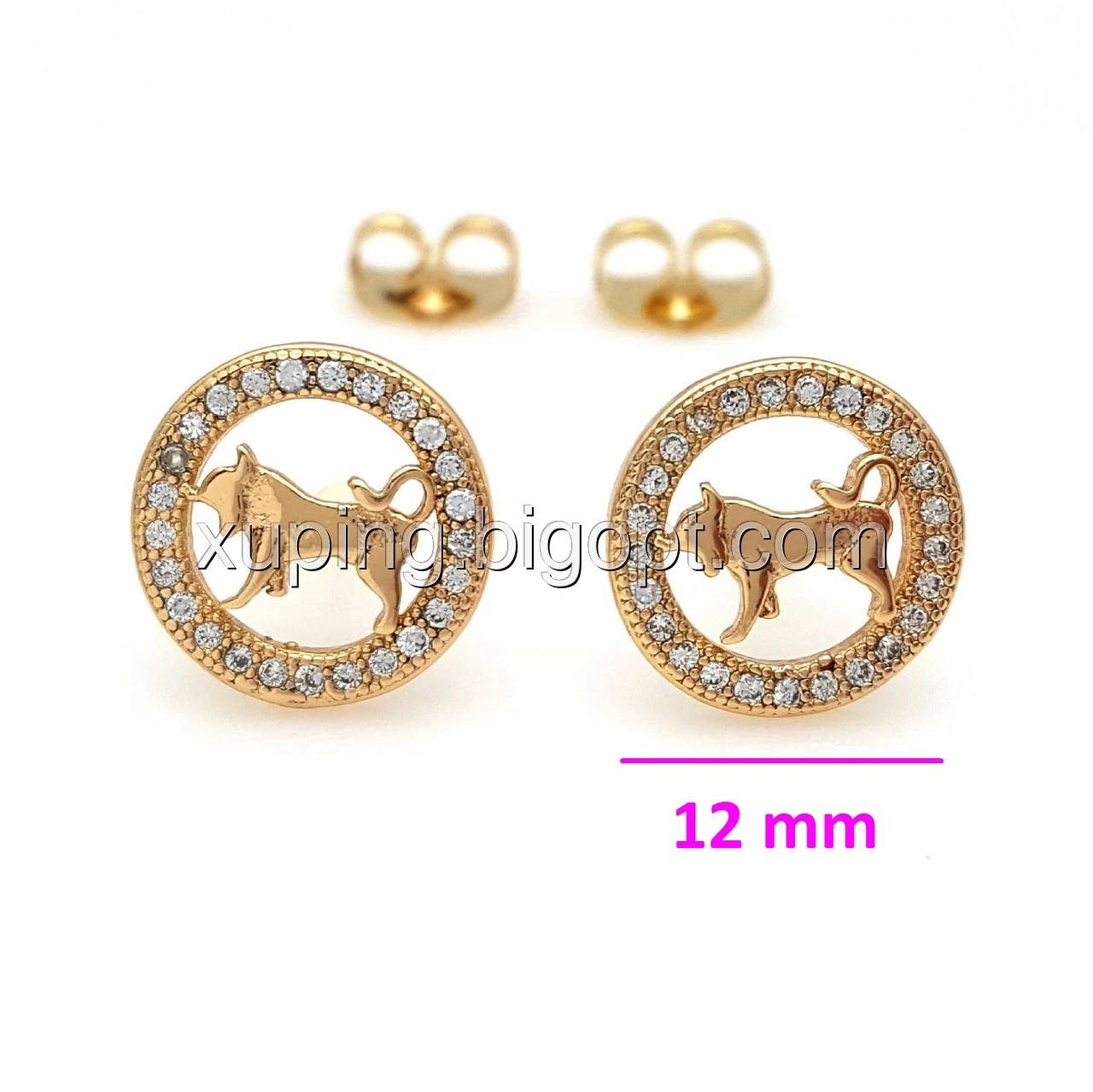 Сережки гвоздики, Знак Зодіаку "Телець", з цирконієм, позолота Xuping