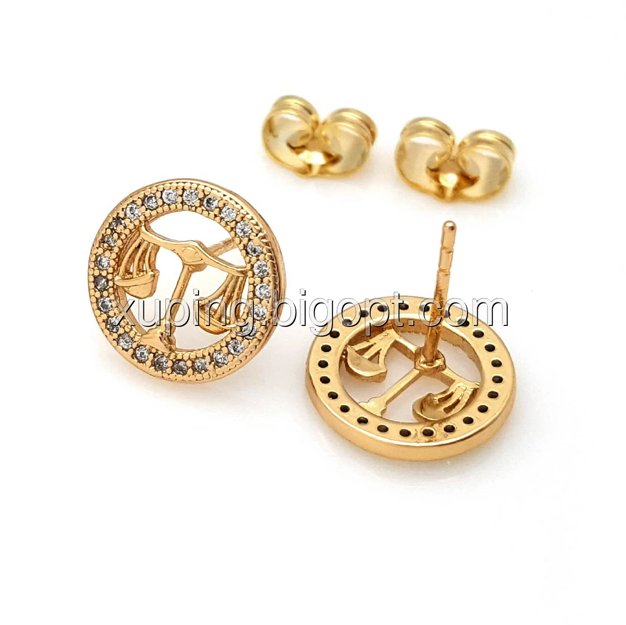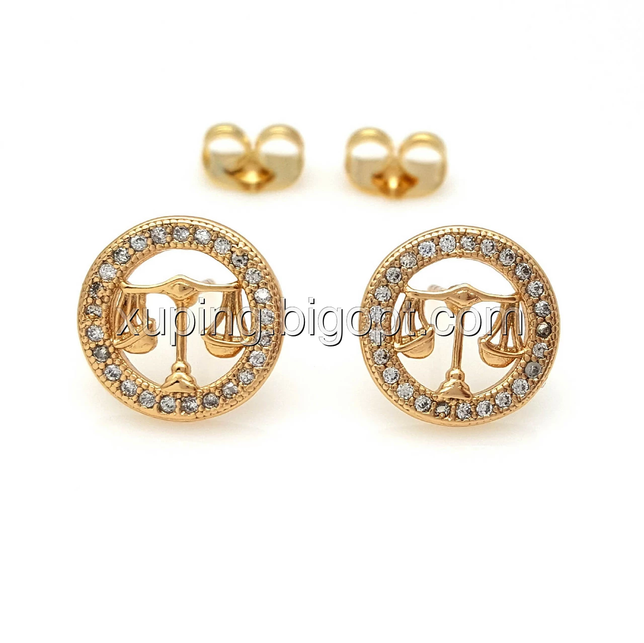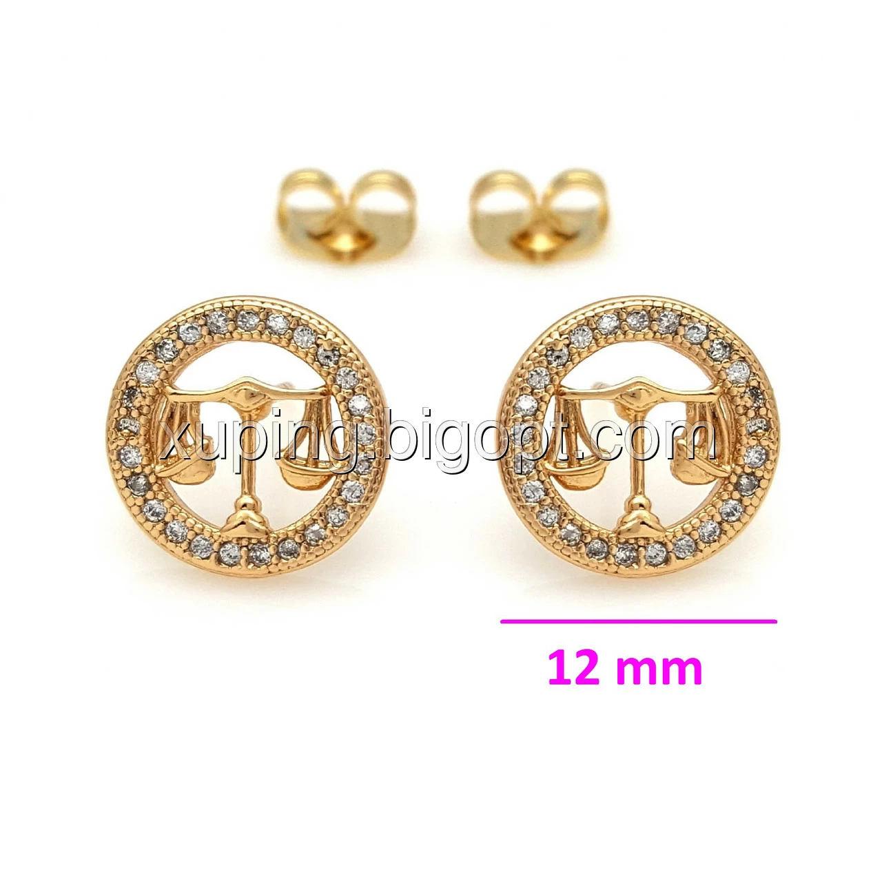 Сережки цвяшки, Знак Зодіаку "Ваги", з цирконієм, позолота Xuping