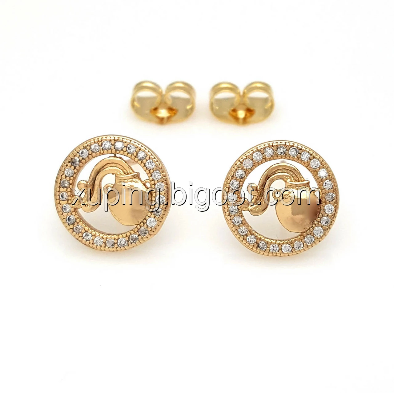 Серьги гвоздики, Знак Зодиака "Водолей", с цирконием, позолота Xuping