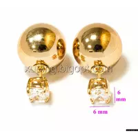 Серьги гвоздики, Золотистый Шар с цирконием, позолота